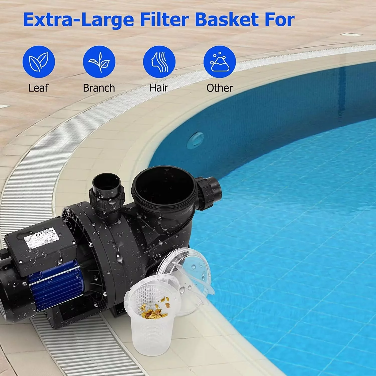 WIDE APPLICATION – The pool pump is ideal for all types of above ground pools. hot tubs. spas. spas and irrigation systems. Our pool pump will bring you a clean and clear water environment for your leisure time. CAUTION: Do not leave electrical components running during extreme weather conditions.