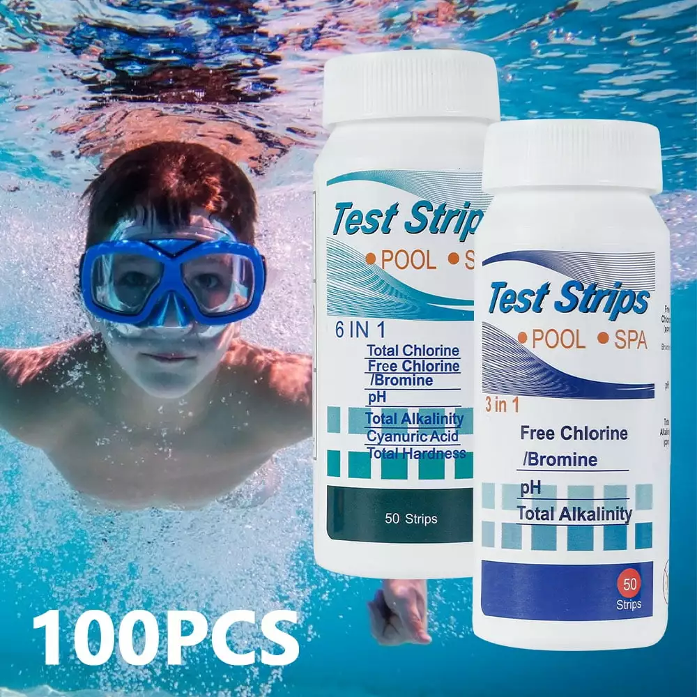100PCS Swimming Pool Water Chlorine Dip PH Test Strips 6 in 1 Paper Clear Water Quality Hot Tub Spa Chemicals Tester