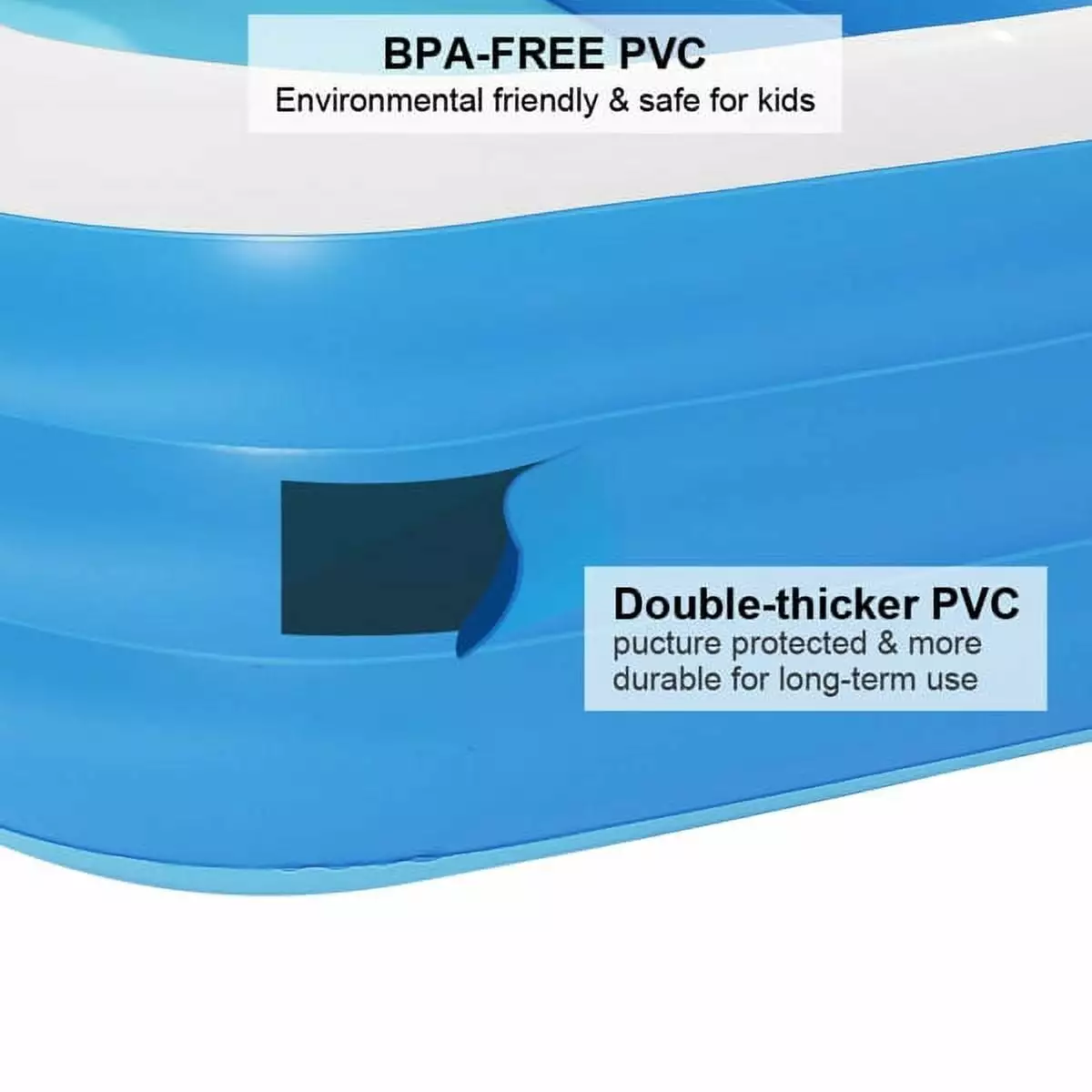 - Full-Sized Inflatable Pools.Large and spacious for splashing and playing indoor or outdoor to keep friends and family cool.