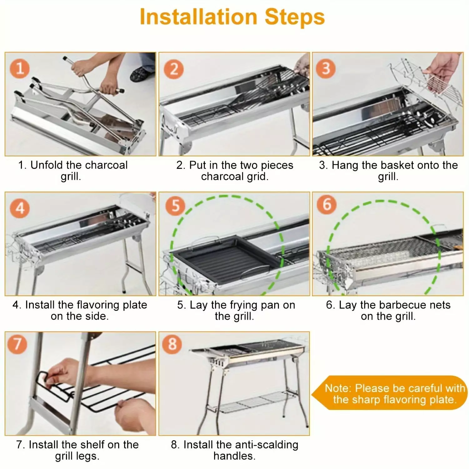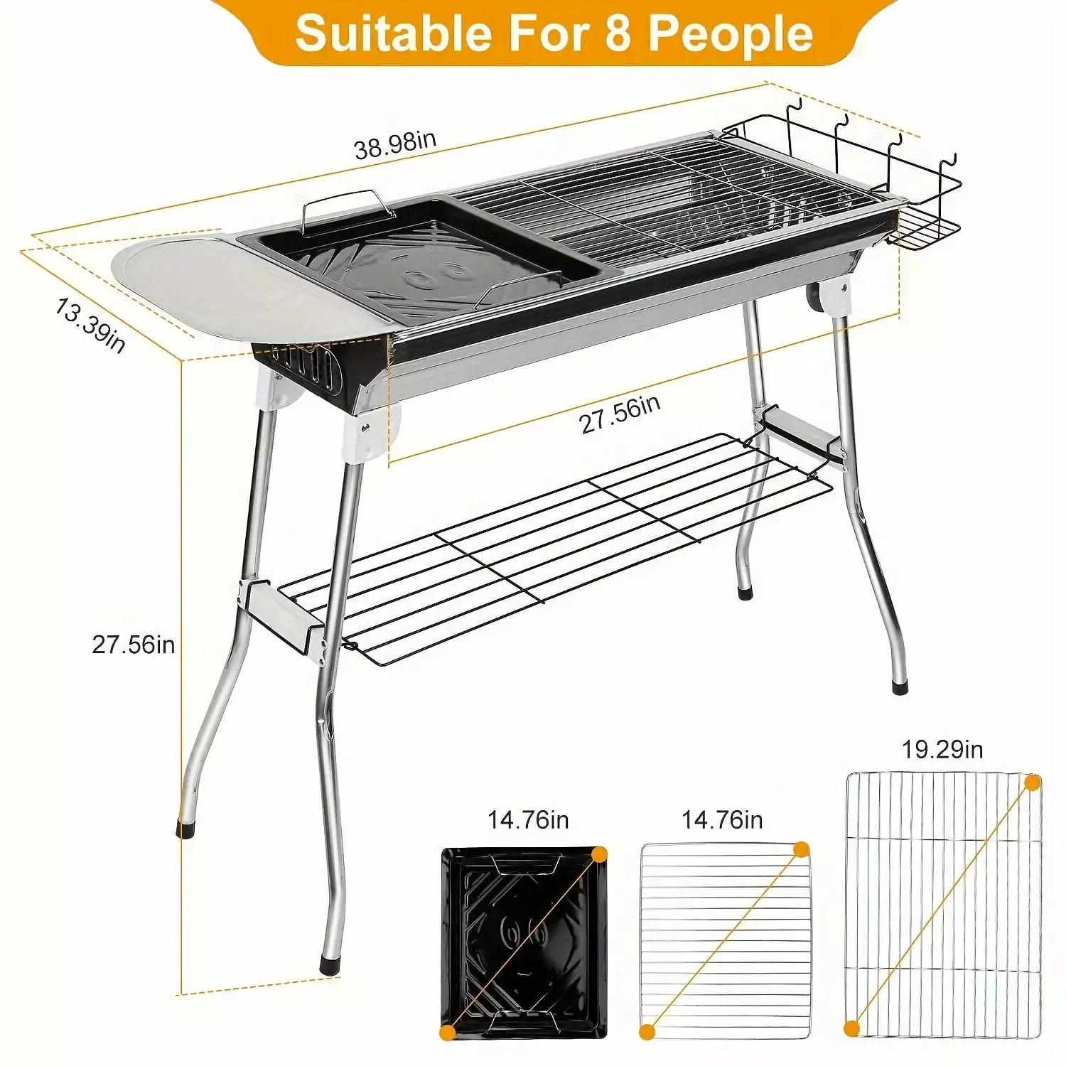 1pc Foldable BBQ Grill. Portable Charcoal Barbeque Grill Stainless Steel BBQ Grill For Picnic Camping. Heat Resistant. Easy To Clean