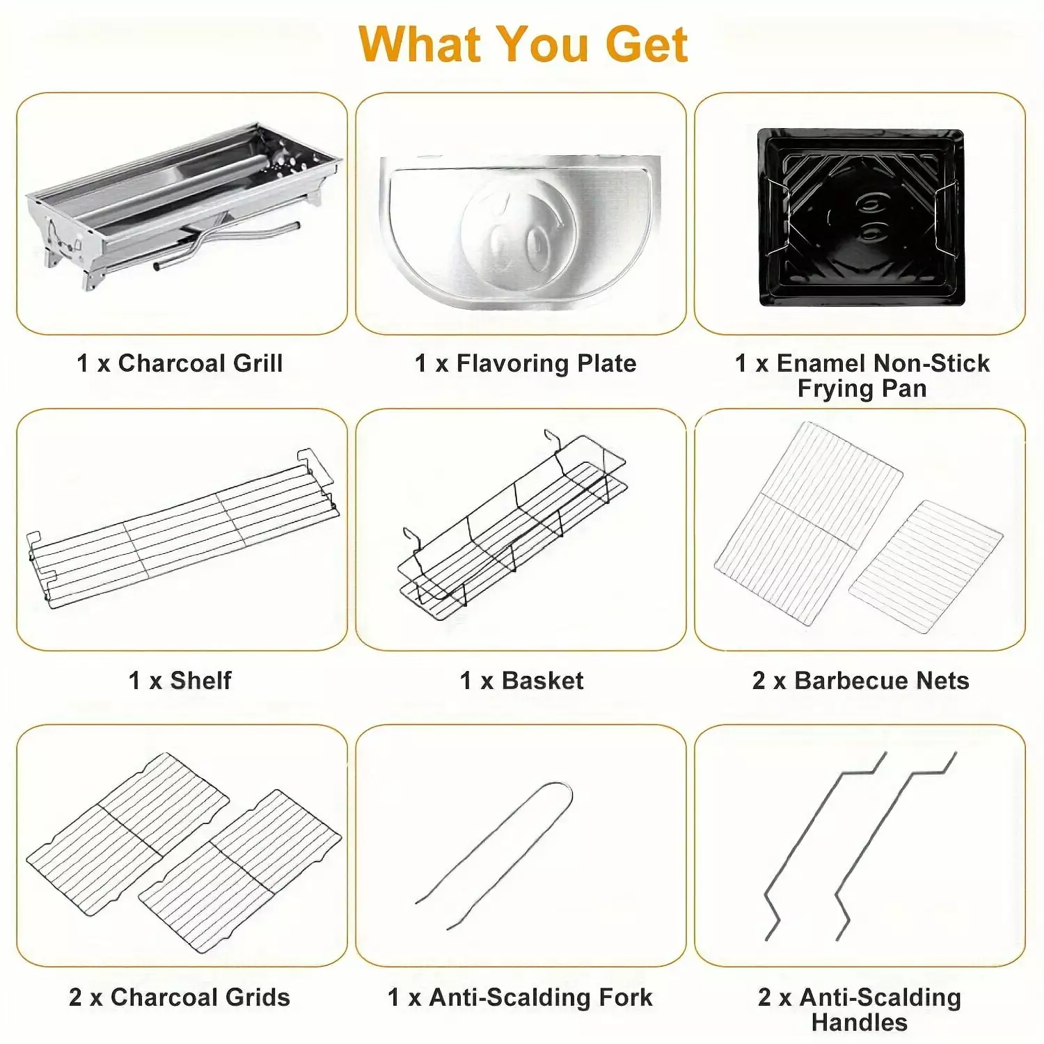 1pc Foldable BBQ Grill Stainless Steel Travel-Friendly Charcoal Grill for Picnic Camping Heat Resistant Easy to Clean