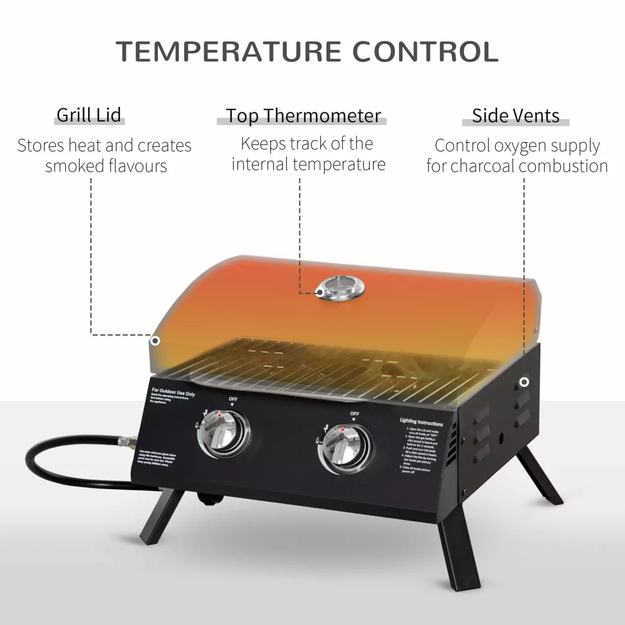 - Convenient Operation: The portable gas grill features a lid that can smoke food simultaneously. An easy-to-read thermometer on the top keeps the internal temperature.