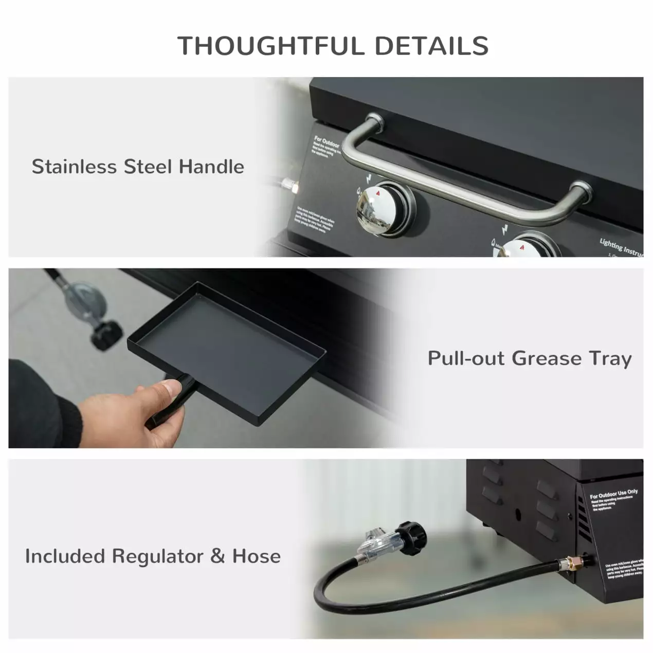 - Double Burners: The large portable propane grill with 2 burners and a wide grill area with two grill grates is ideal for outdoor barbecue parties. Each burner is with piezo ignition. which you can operate separately.