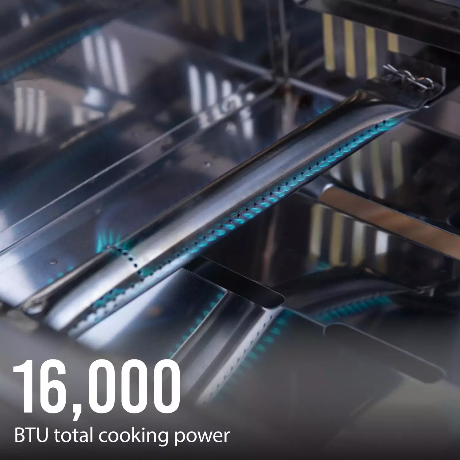 - Total Cooking Power: Two stainless steel main burners with 1-year warranty provide up to a total of 16.000 BTU’s.