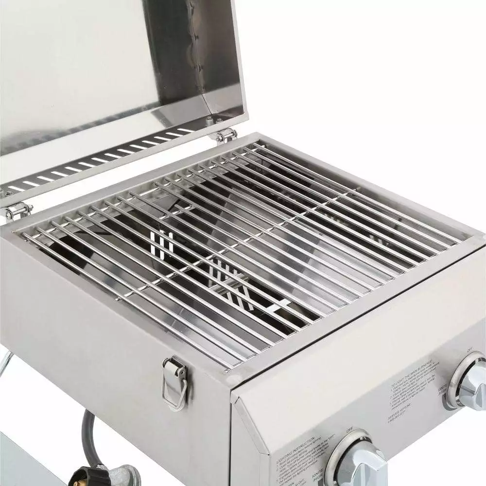 The Nexgrill Portable 2-Burner Stainless Steel Tabletop Grill is equipped with two push-and-turn ignition burners for quick and easy start-ups. It offers 16.000 total BTUs and reaches high temperatures quickly with each burner independently adjustable. The stainless steel-wrapped grill grate covers 184 sq. in. to accommodate as many as nine hamburgers at once. The unit connects to a 20 lb. LP tank and can be modified to work with 1 lb. propane cylinders. No batteries or external flame required for ignition. Adapters and propane are sold separately.