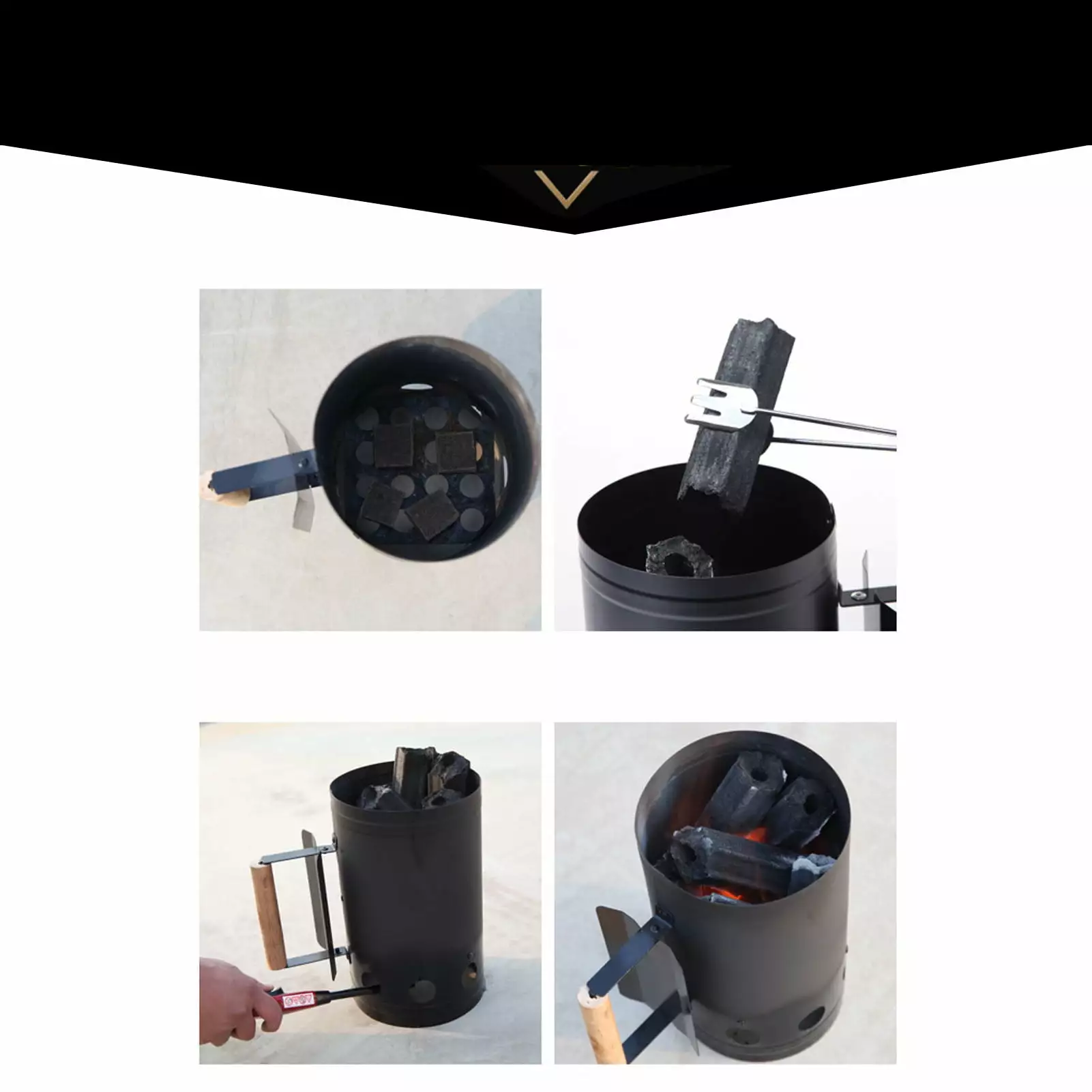 - 1 Excellent Material: Natural wood handle and thickened stainless steel plate. high temperature resistant. safe and anti scalding. anti slip. 2 Wind Inlet Design: In order to ensure that the charcoal has sufficient oxygen combustion. there is a specially designed wind inlet to ensure that the charcoal is fully burned. 3 Superior Craftsmanship: All the link parts are reinforced with special screws. so that the ignition bucket is more durable. and also convenient to pour carbon. anti hot and anti splash. 4 Perfect Accessory: This quick fire starter can works with all charcoal grills and is the perfect charcoal grill accessory. 5 Wide Applications: Perfect for briquette charcoal BBQ. outdoor cooking. backyard BBQ. barbecues. car camping. garden grilling. etc.
