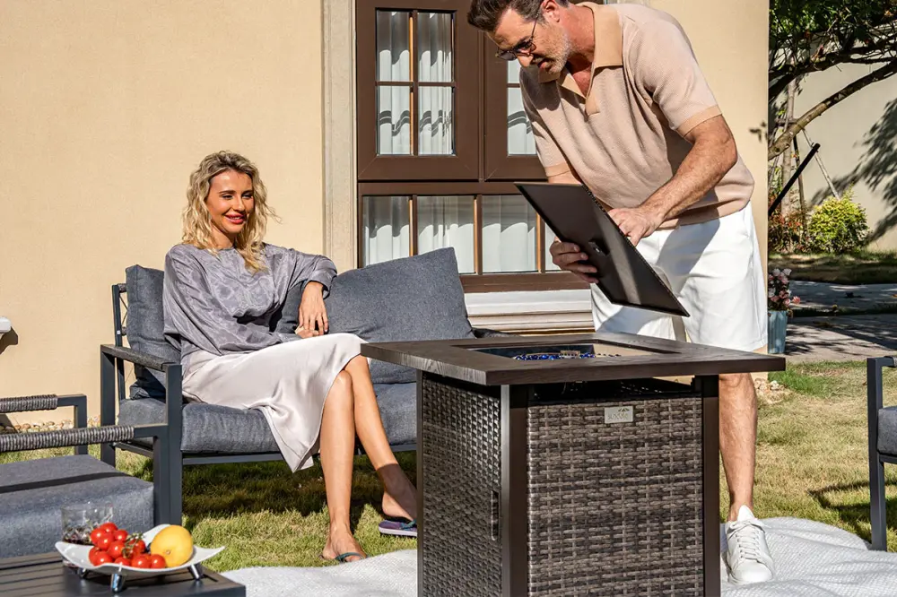 Advanced materials ensure it can withstand outdoor conditions. The propane pit is equipped with everything you need to ensure easy assembly and seamless setup. This fire pit delivers no smoke or sparks and you can enjoy a warm, safe fire.