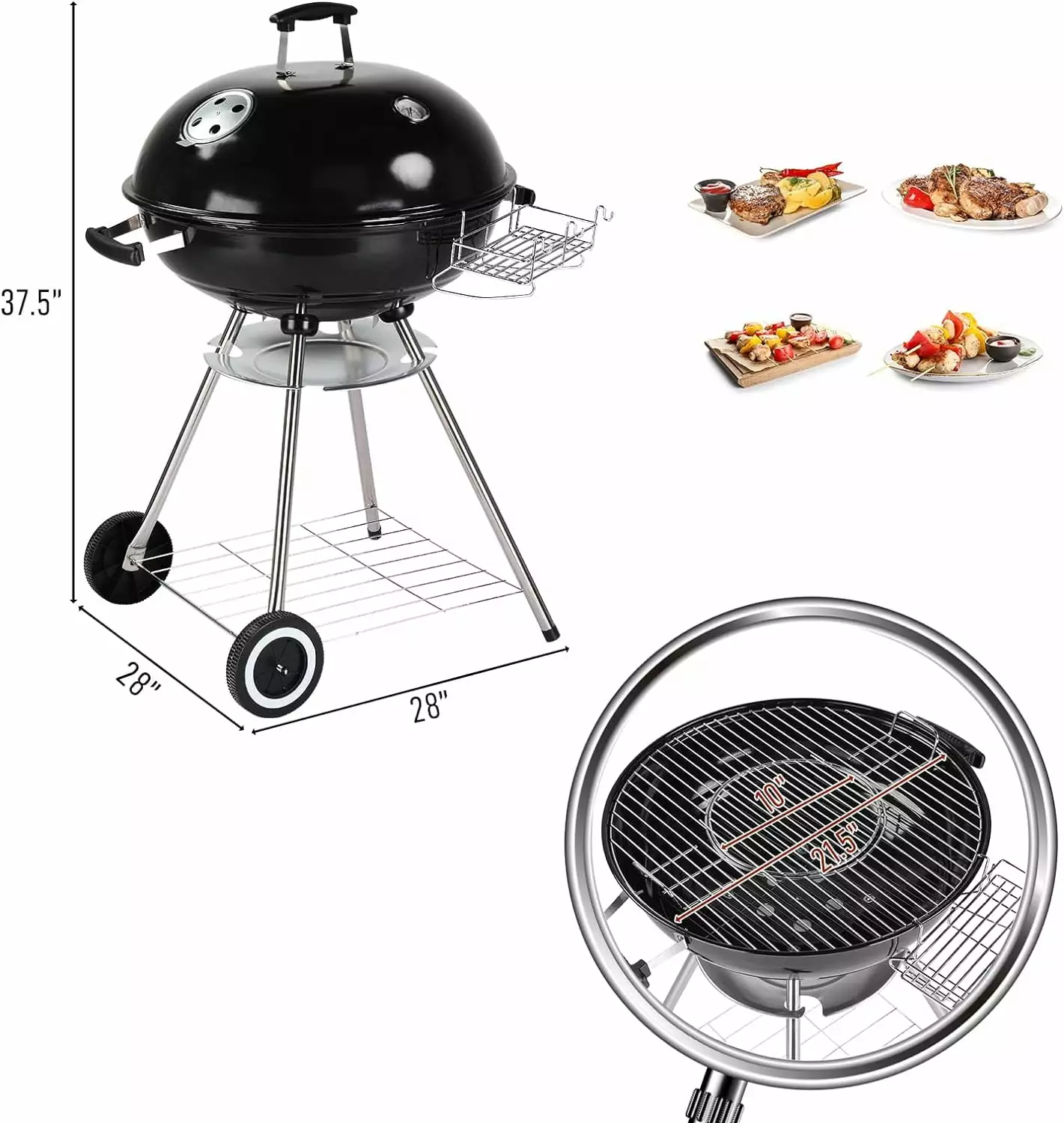 - [Spacious 28 BBQ Grill]28-inch cooking grate provides ample room to grill up feasts for all your family and friends. It’s the perfect companion for your backyard parties and outdoor gatherings. Porcelain-enameled lid and fire bowl not only retain heat for optimal cooking but also resist rust and peeling. ensuring long-lasting durability.