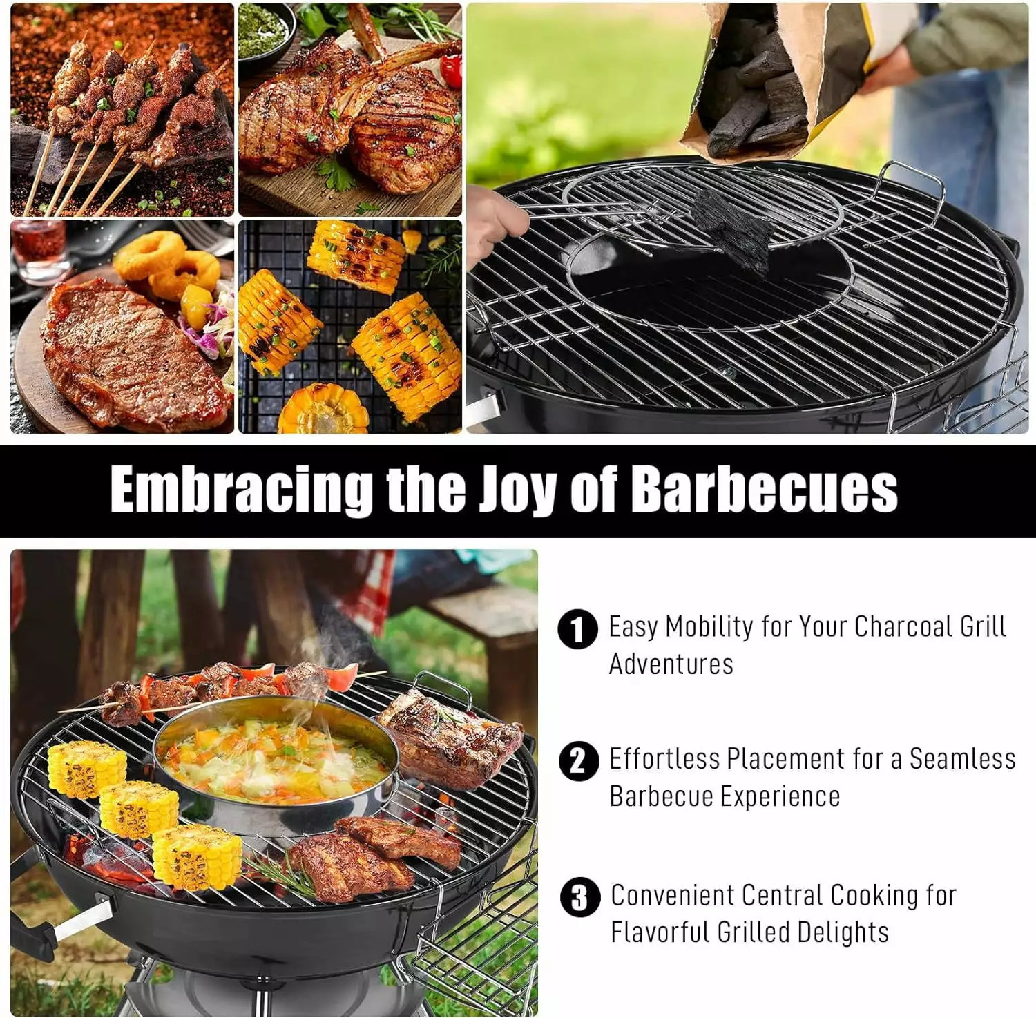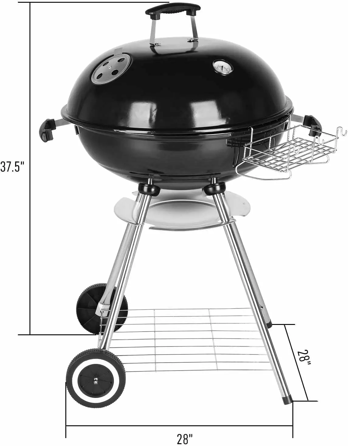 - Spacious 28 BBQ Grill: 28-inch cooking grate provides ample room to grill up feasts for all your family and friends. It’s the perfect companion for your backyard parties and outdoor gatherings. Porcelain-enameled lid and fire bowl not only retain heat for optimal cooking but also resist rust and peeling. ensuring long-lasting durability.