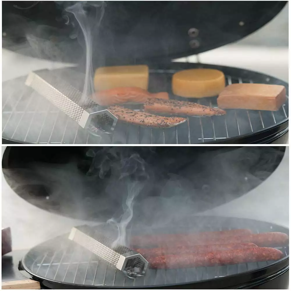 - 4.ADDS AUTHENTIC SMOKY FLAVOR TO YOUR FOOD This stainless steel smoker tube is compatible with all grills. adding a delicious smoky flavor to your barbecue like it was grilled over a wood fire