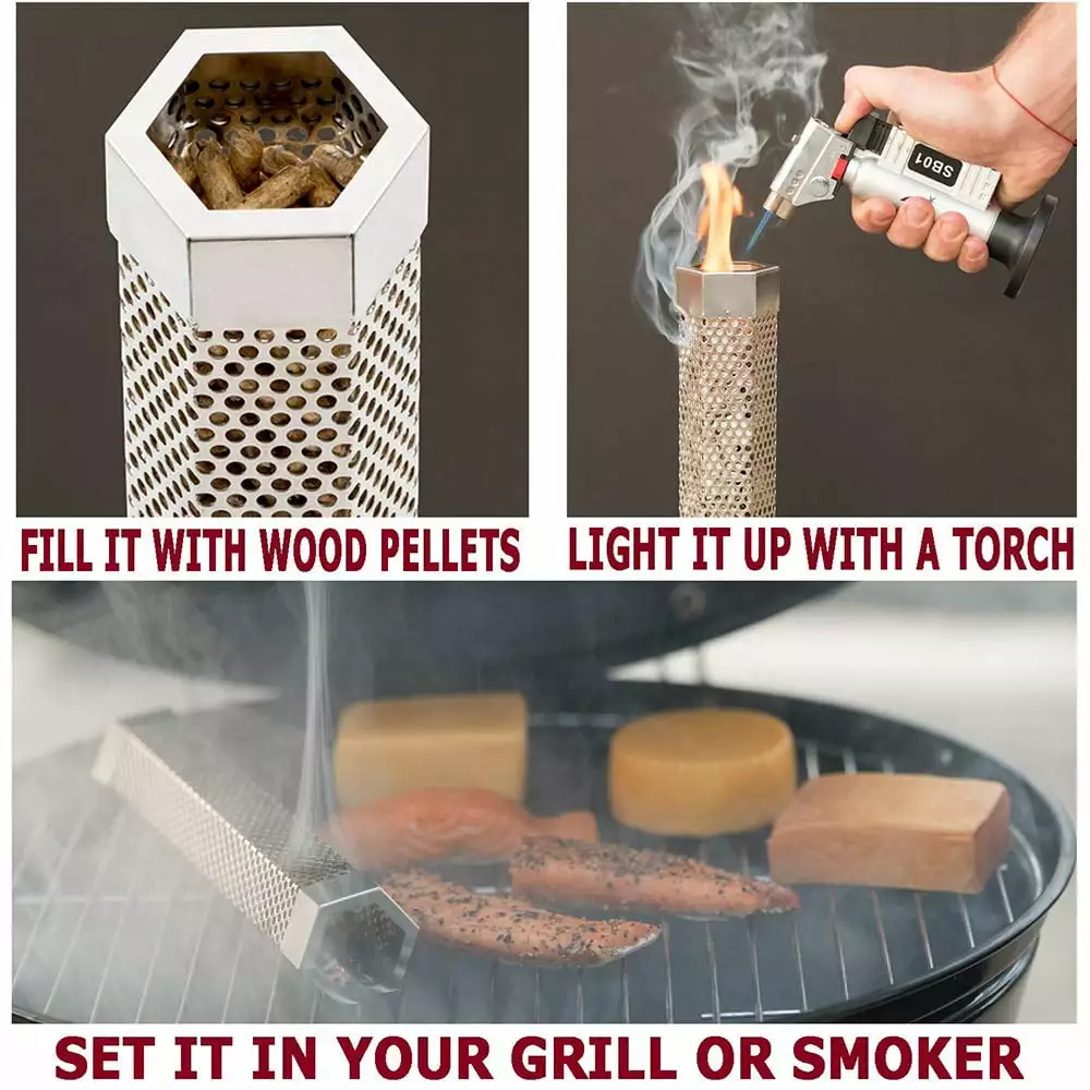 - 3.NO LIGHTER FLUID NEEDED To use. simply fill the BBQ smoker with wood pellets. lean the smoker tube against the inside wall or on grill grates and let the BBQ pellet smoker tube release smoke. No extra tools or accessories needed