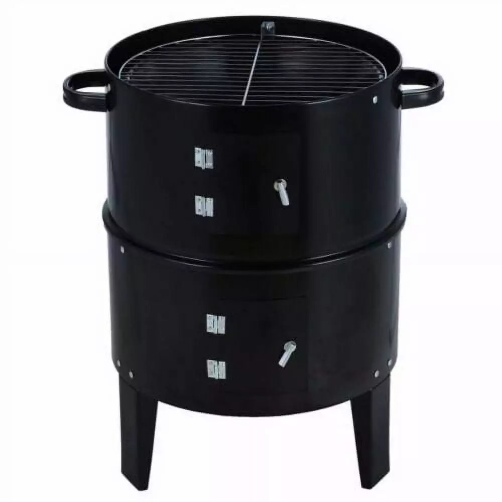3 in 1 Charcoal Vertical Smoker Grill BBQ Roaster Steel Barbecue Cooker Outdoor