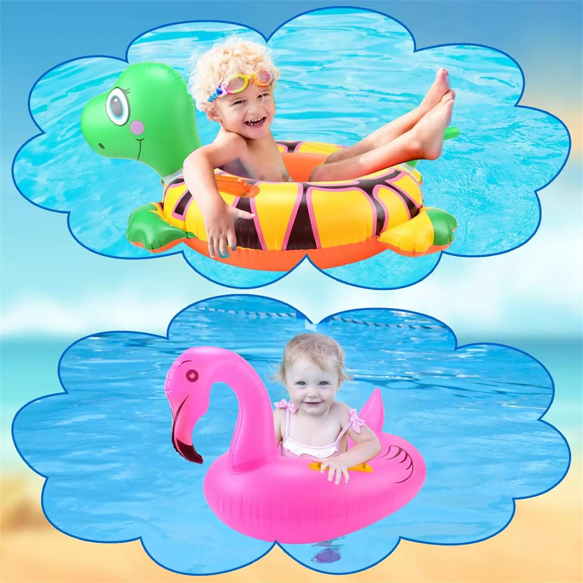 - Safety Protection: The kids pool floats are equipped with wider airbags and safety handles on both sides. and specially designed safety seats that effectively lower the center of gravity and improve balance