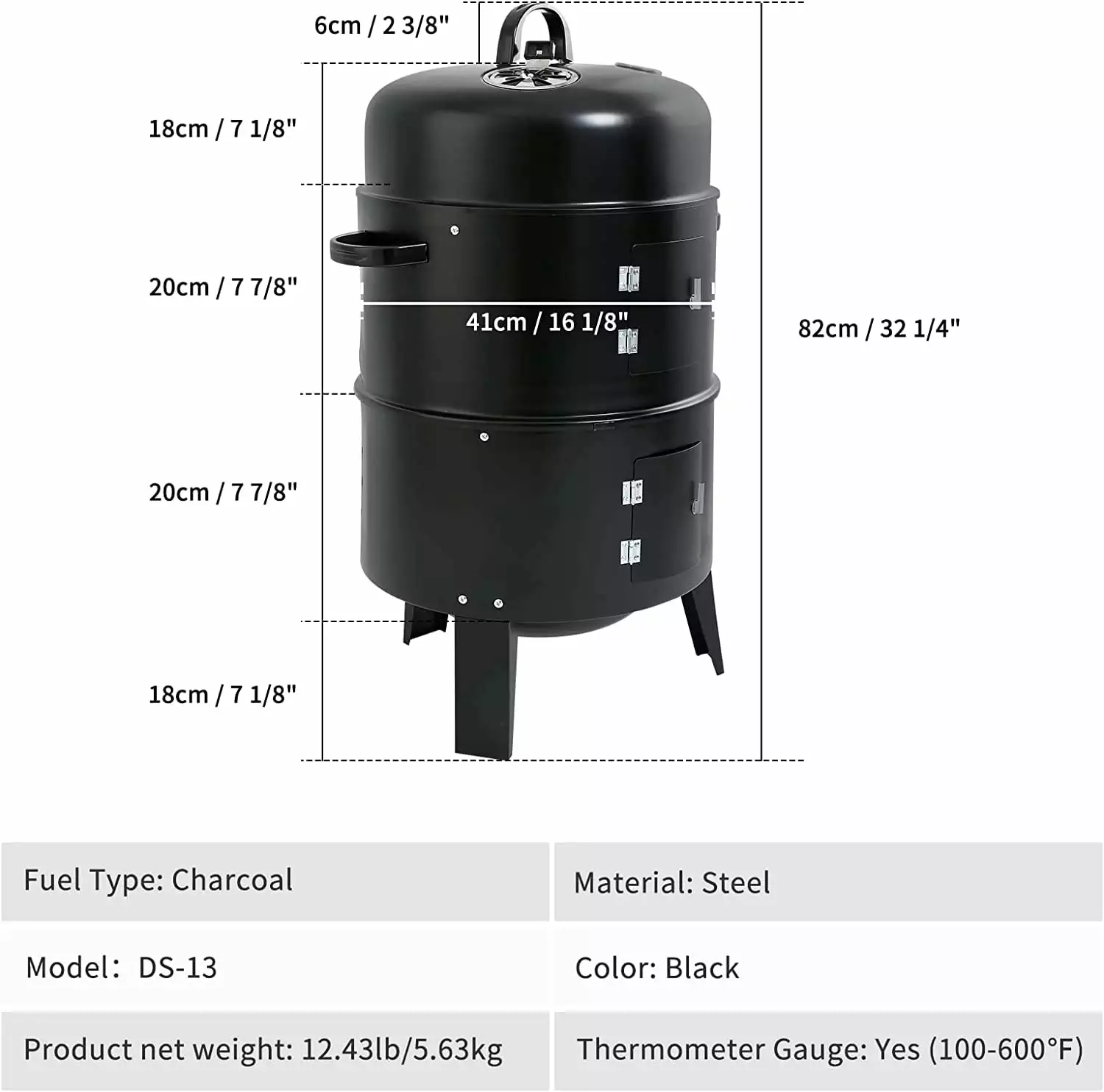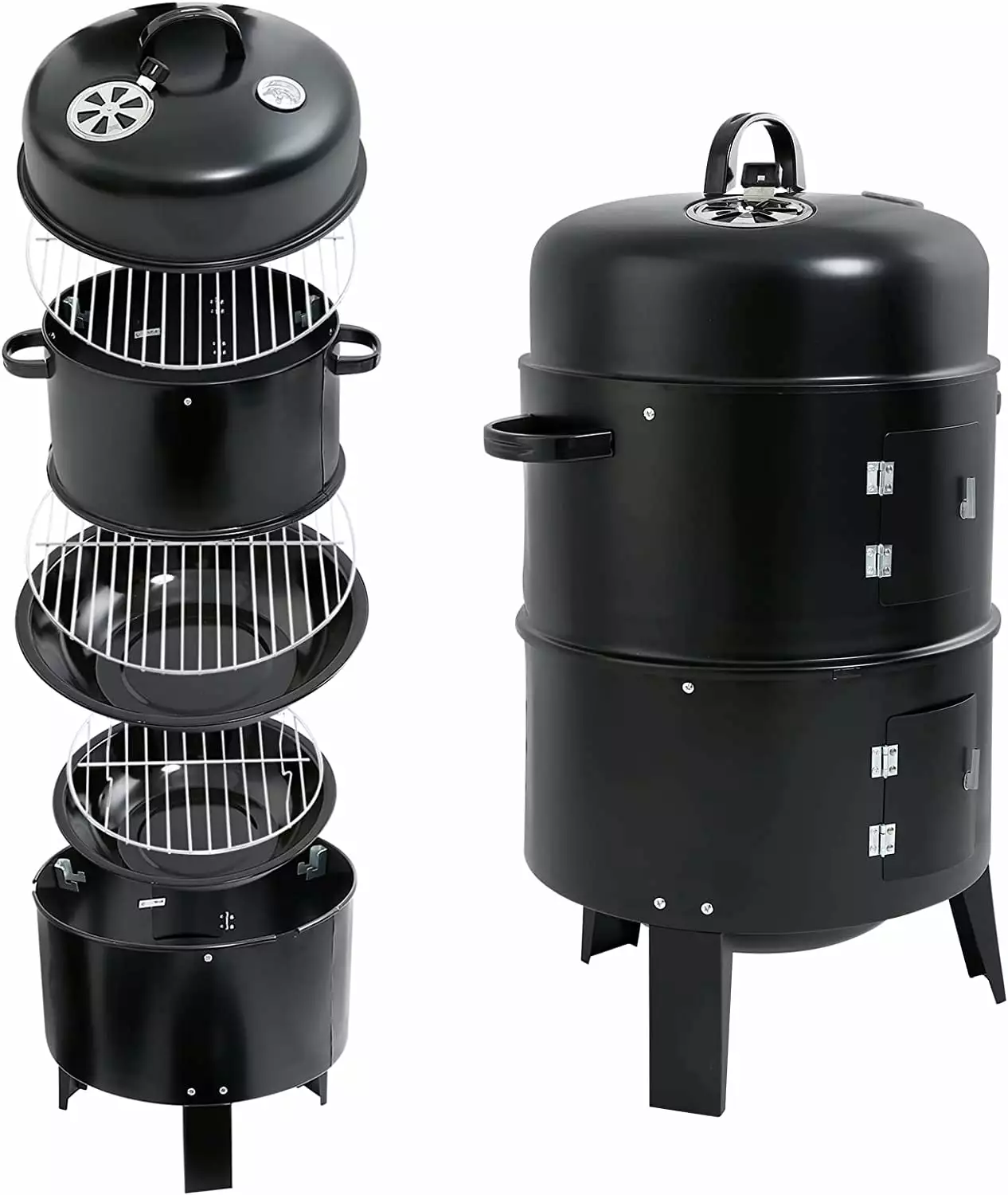 - This barbecue smoker is equipped with 2 doors. which is convenient for checking the food condition and adding charcoal in time.