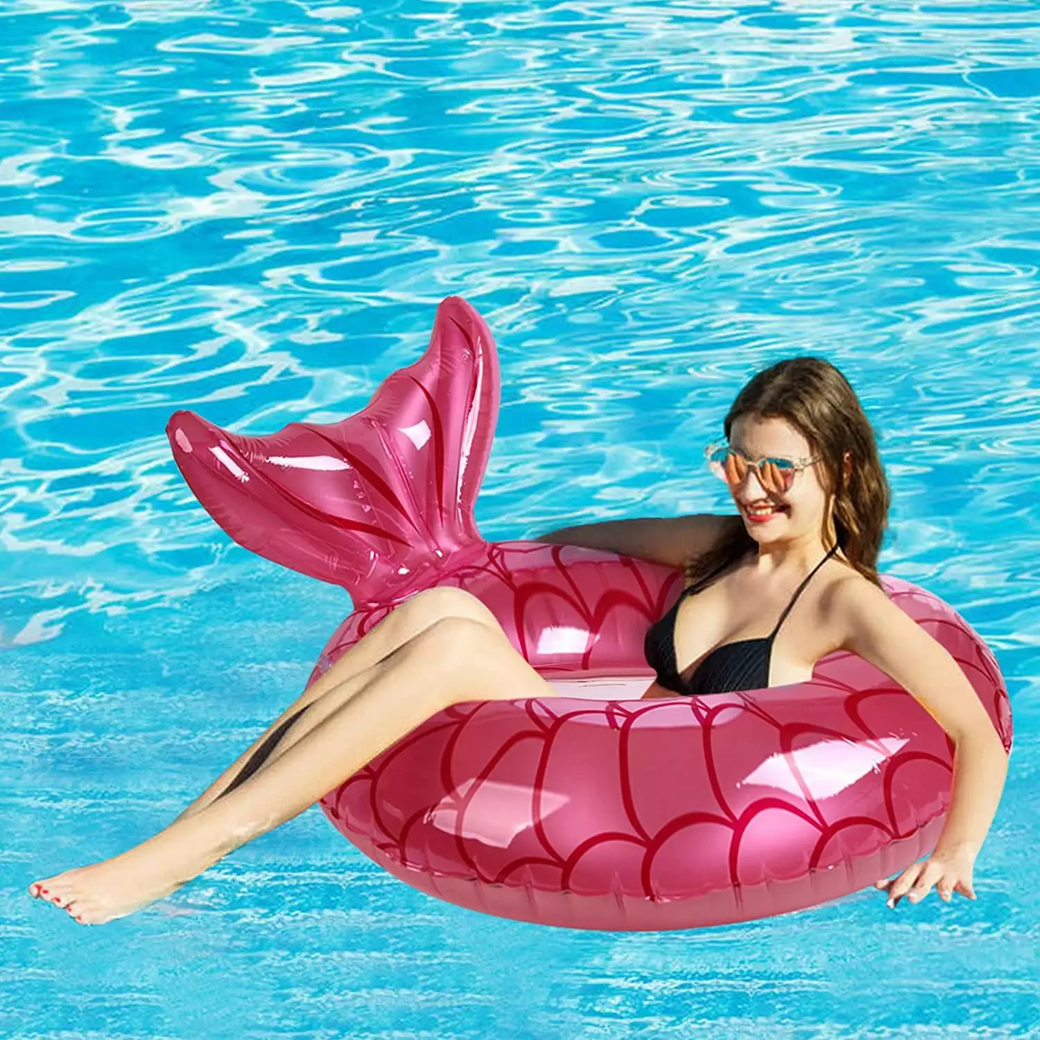- FASHION DESIGN:Fishtail-shaped design pool floats . you can lie on it. like lying on a soft sofa with pillows. will give you a lot of fun.