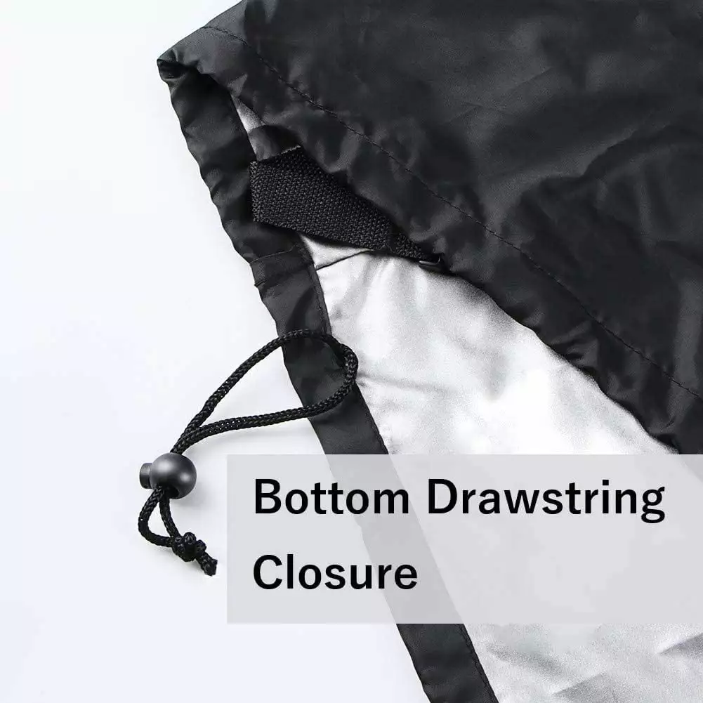 Windproof with adjustable drawstring: There is one drawstring at the bottom of the bbq cover which can be adjustable. You can try to tighten the drawstring. when the weather is bad. such as strong wind. snow. sandstorm. Whenever you use the cover. it will stay safely on your barbecue.