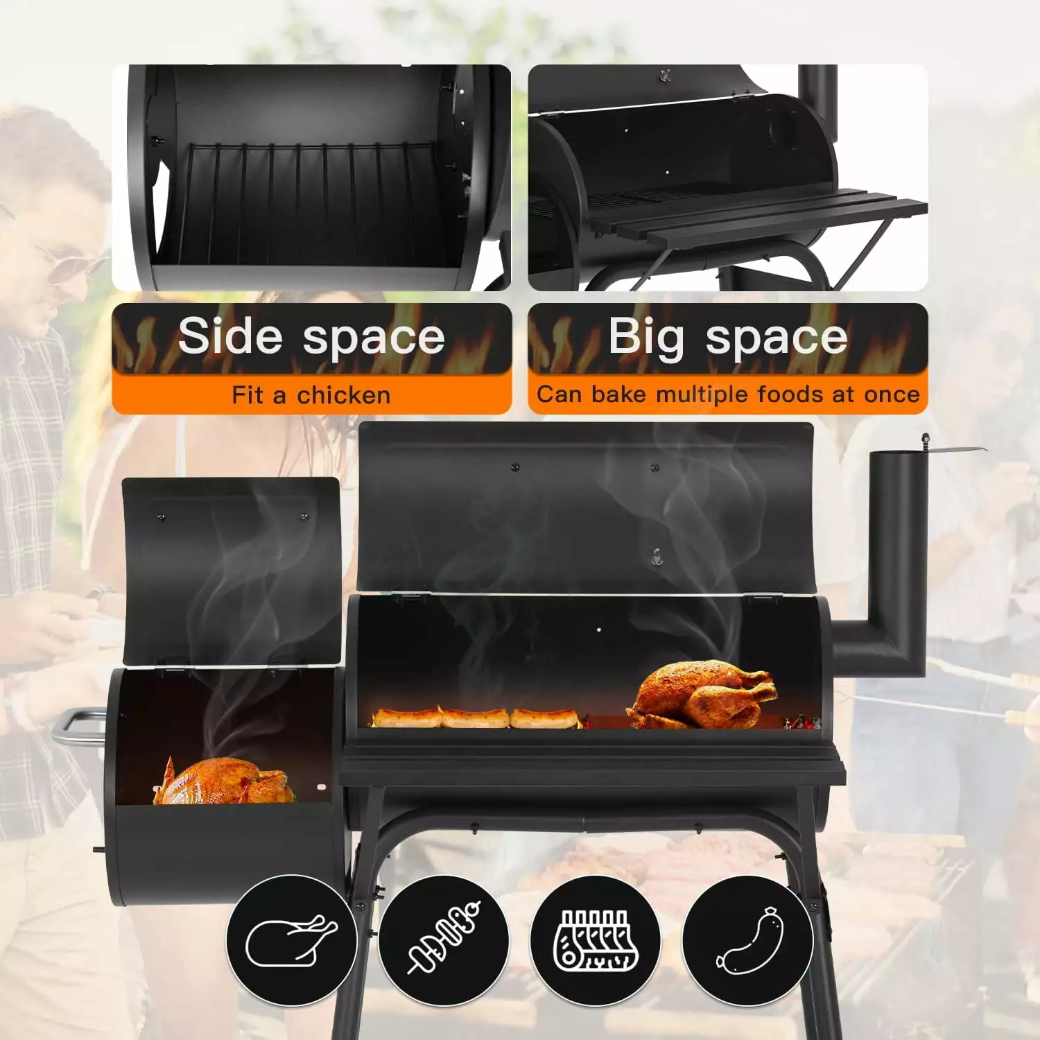 - Multiple Barbecue Modes This barbecue grill is designed with two ovens and can have three barbecue modes to help you cook delicious food. American braised roast. Chinese skewer roast. interesting fried roast.