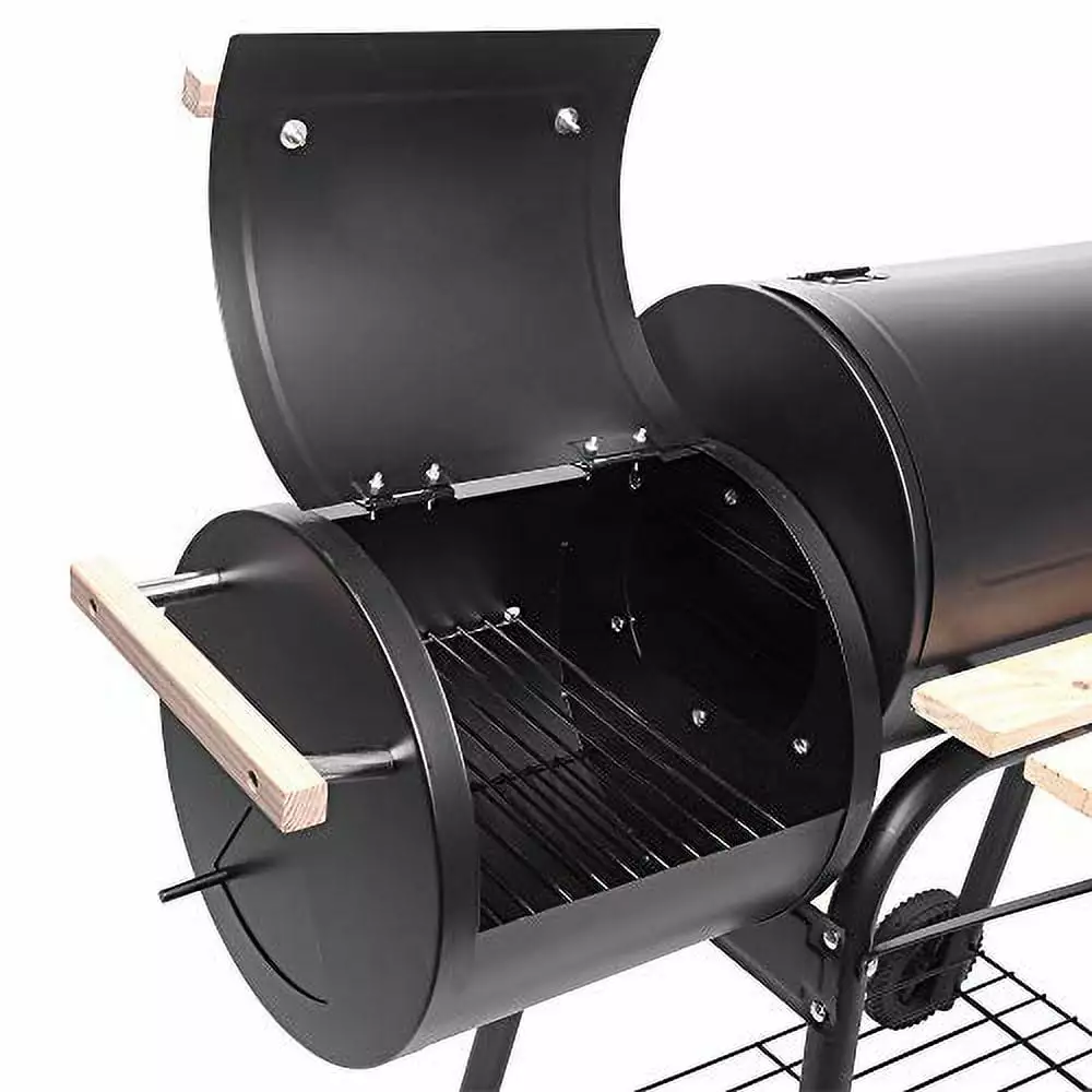 - Efficient Heating and Temperature Control: The seamless connection between the side smoker and the main chamber ensures quick heating and consistent warmth. The bbq grill is equipped with a professional thermometer and adjustable damper. you have precise control over the cooking temperature.