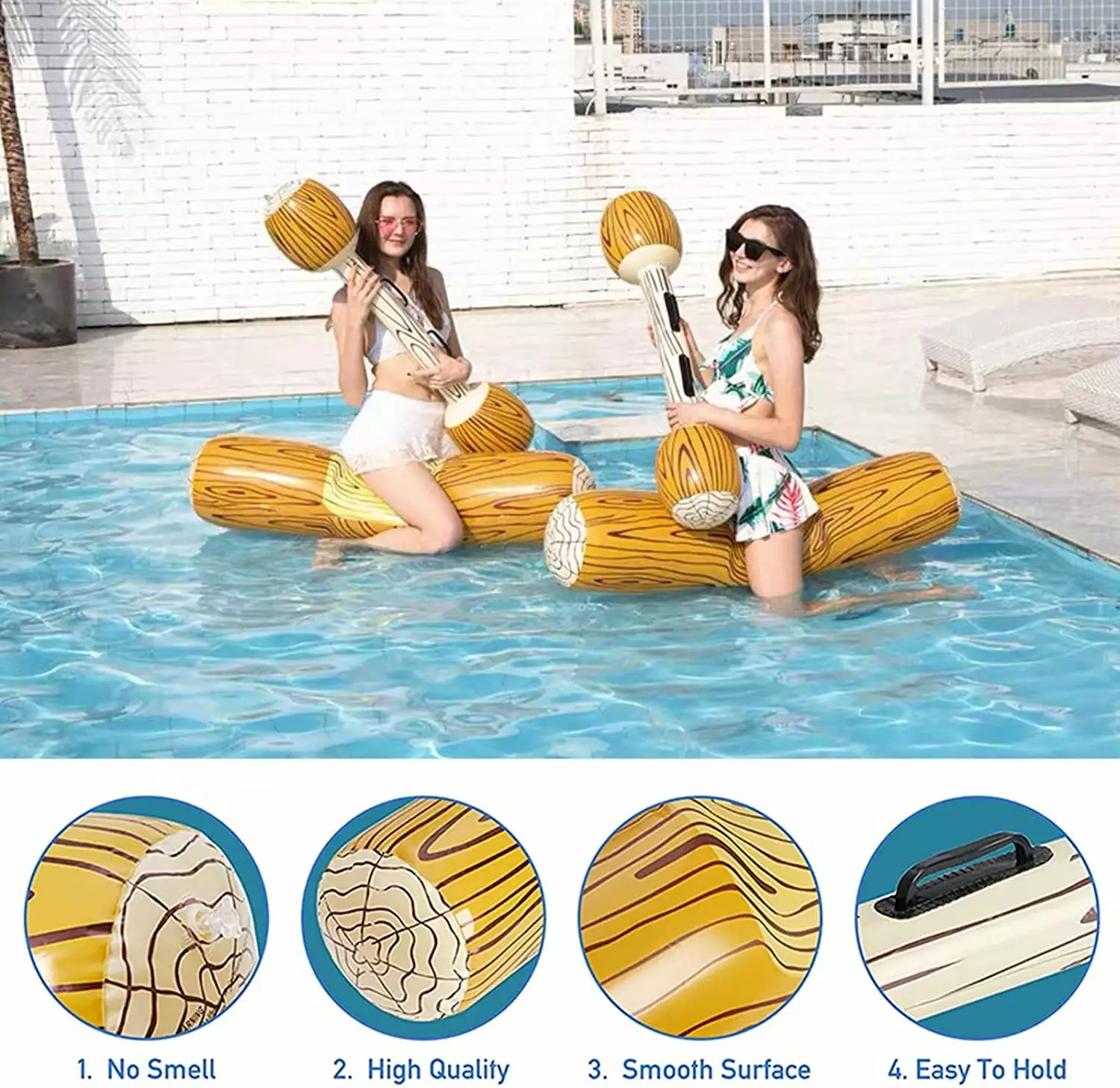 uD83CuDF0A Pool Toys for 2 Players: Including 2 inflatable log rafts and 2 inflatable sticks. in addition. an extra foot inflator will be given to you so you can inflate your Inflatable Rafts anytime.