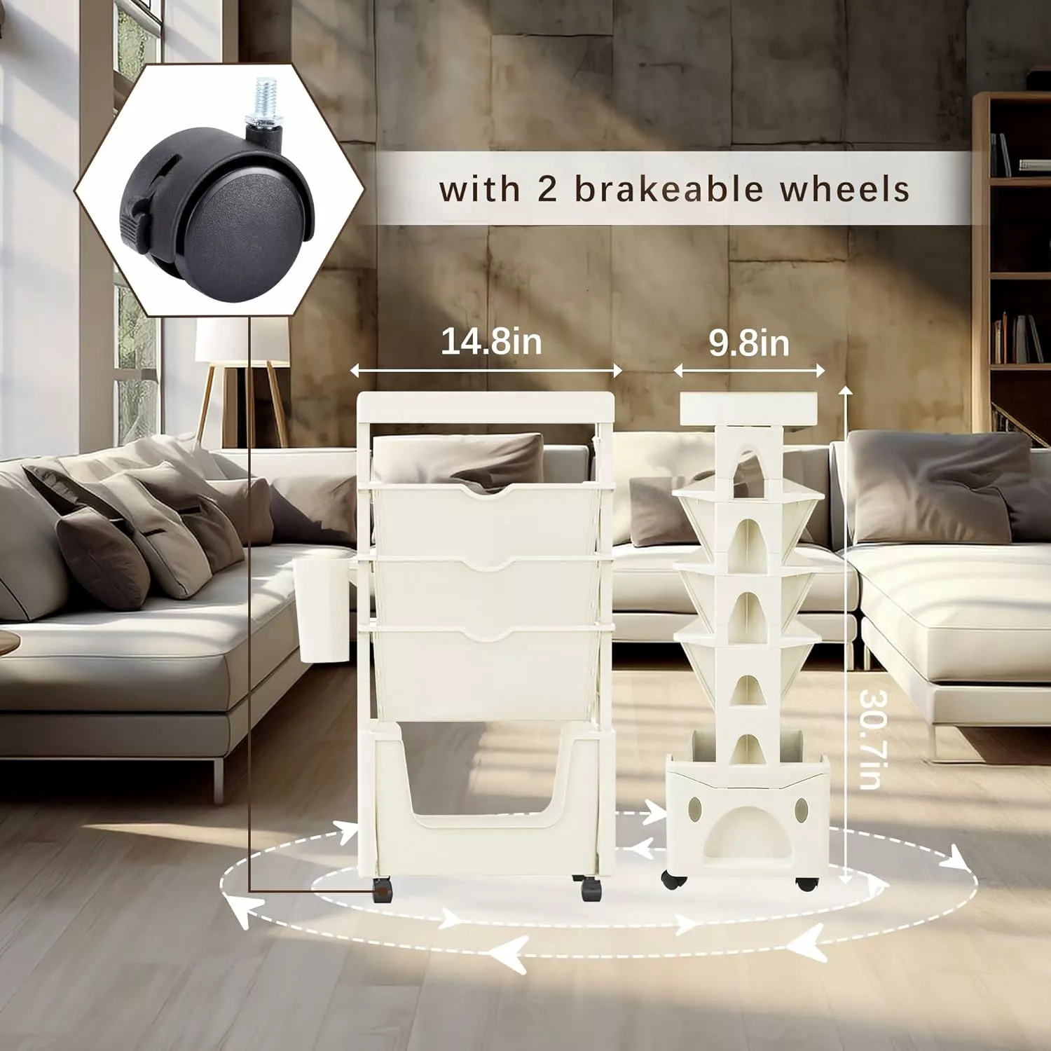 - [Small Size Big Space]The 9.8D x 14.8W x 30.7H size rolling bookshelf cart requires less than 0.1 O of floor. but can provide you 5 surprising large capacity shelves. easy to stackable. take and storage. Multi-layer storage. classified storage of books. documents. say goodbye to chaos. make your life more orderly and more organized