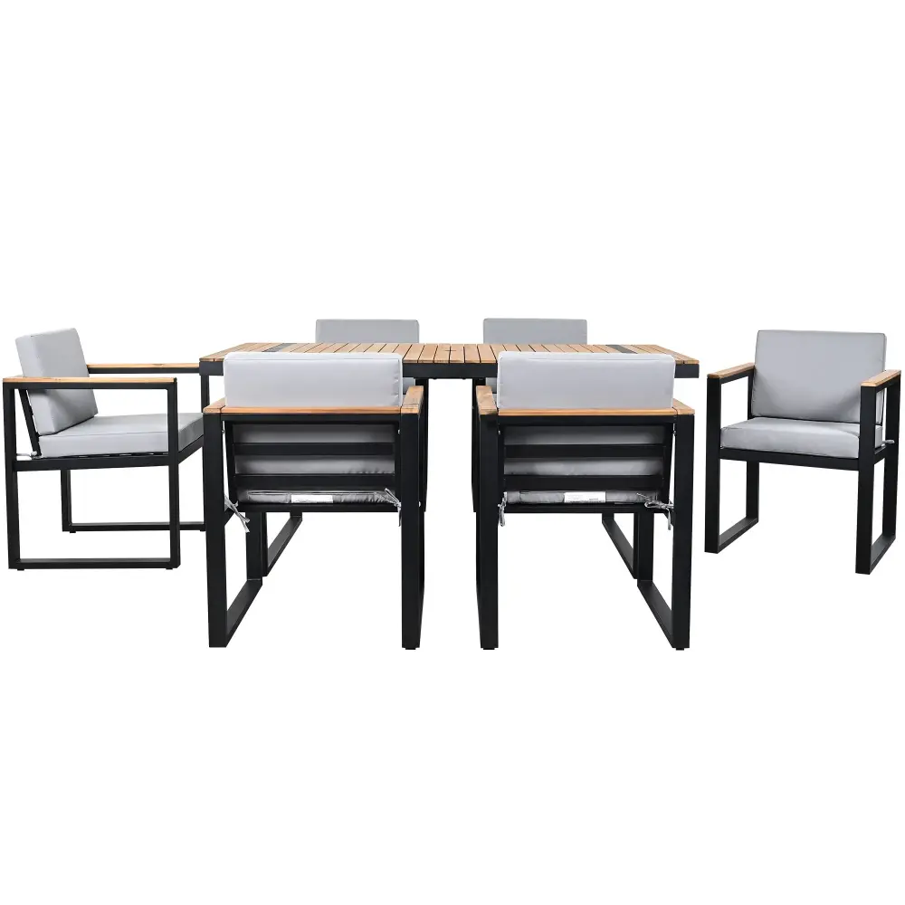 - Stylish Design – This 7-piece outdoor dining set features a sleek, contemporary design that blends seamlessly with various outdoor settings. The combination of acacia wood and steel, along with high-density foam cushions, gives the set a up-to-date, minimalist appearance, perfect for patios, gardens, or balconies.