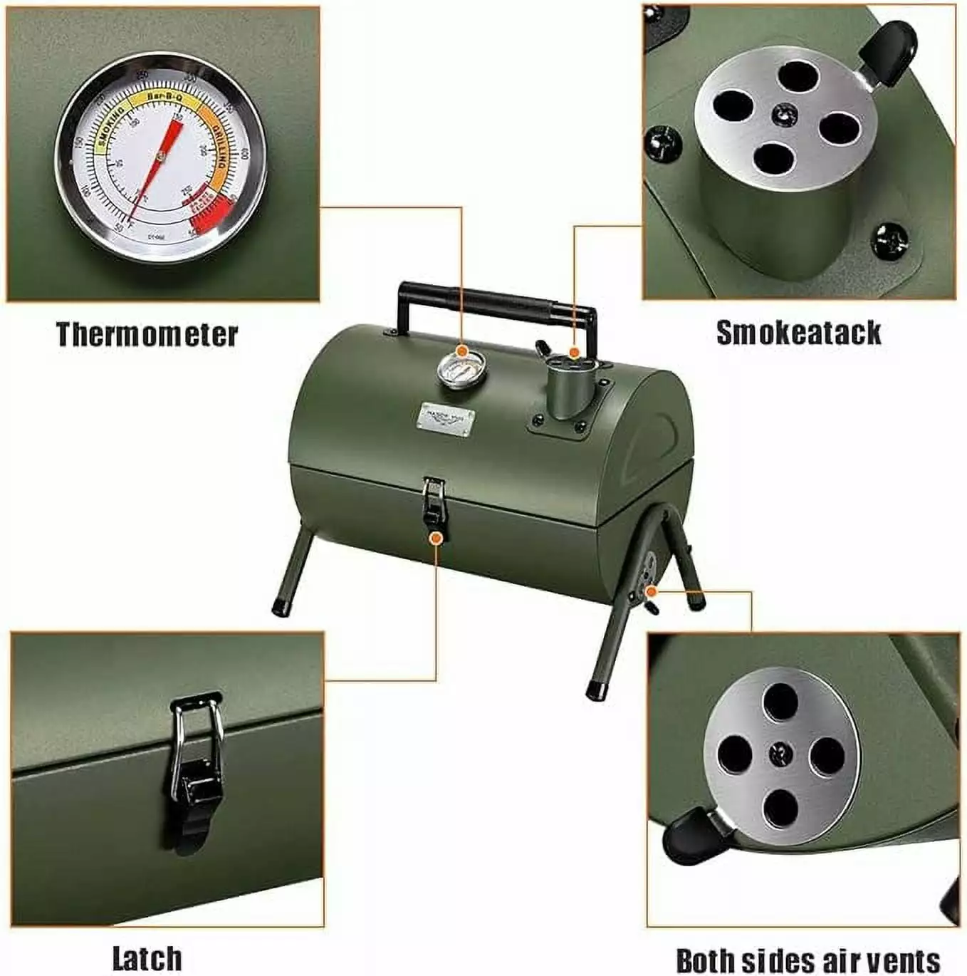 - Adjustable Portable Charcoal Grill Multi-functional Metal Small BBQ Smoker for Outdoor Hiking Picnic(Green)