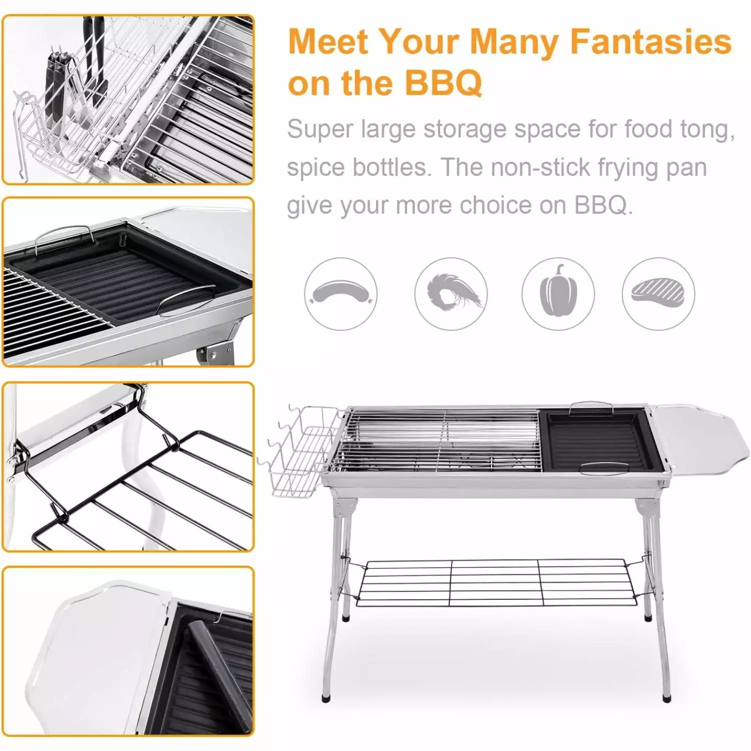 - [100% Quality Guarantee & Extra BBQ Tool Included]This barbecue grill has passed the quality certification. guarantee the long-term safe use. No harm to human. Rest assured to buy it. We will do the best for you! If you have any quality problem with items. please contact on us except of man-made damage. If you have any questions. please feel free to contact customer service to resolve your inquiry within 24 hours. Extra BBQ Tool Included Barbecue Charcoal Grill. Storage basket. Non-stick frying