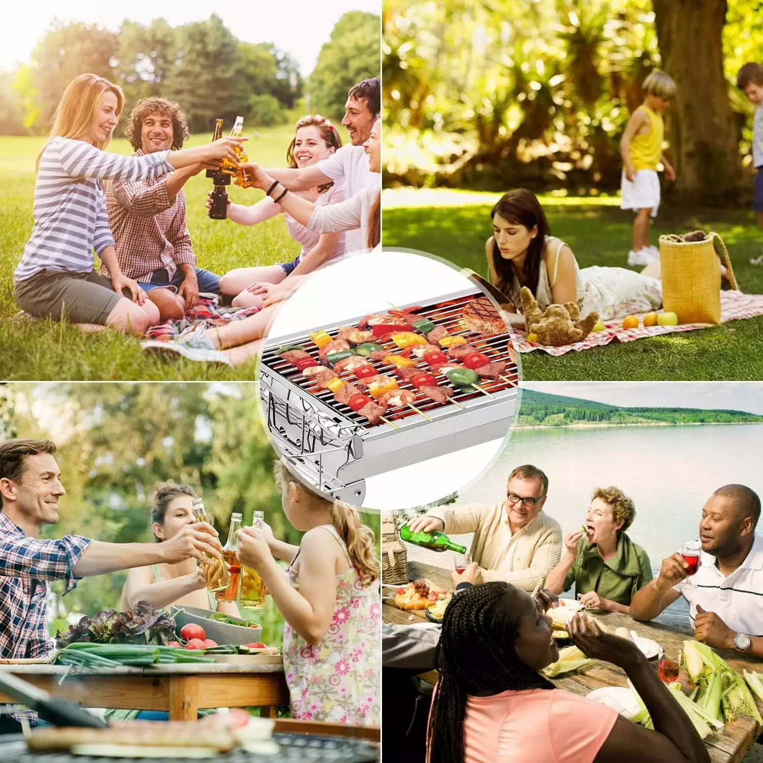 - [Best Outdoor BBQ Grill]Charcoal grill design. keeps your meat the most original flavor. meet your desire for smoky. grilled flavor and smoking meats. Just get together with all your friends or family to have this kind of distinct romance for outdoor smoker cooking. BBQs. picnics. tailgating. camping or a night on the patio. indoor. outdoor parties. traveling. park. beach and Enjoy your tasty food Anywhere! Anytime! Grill size of 28.74×13.19(73cm x 33.5cm). perfect for supplying 5 to 10 people