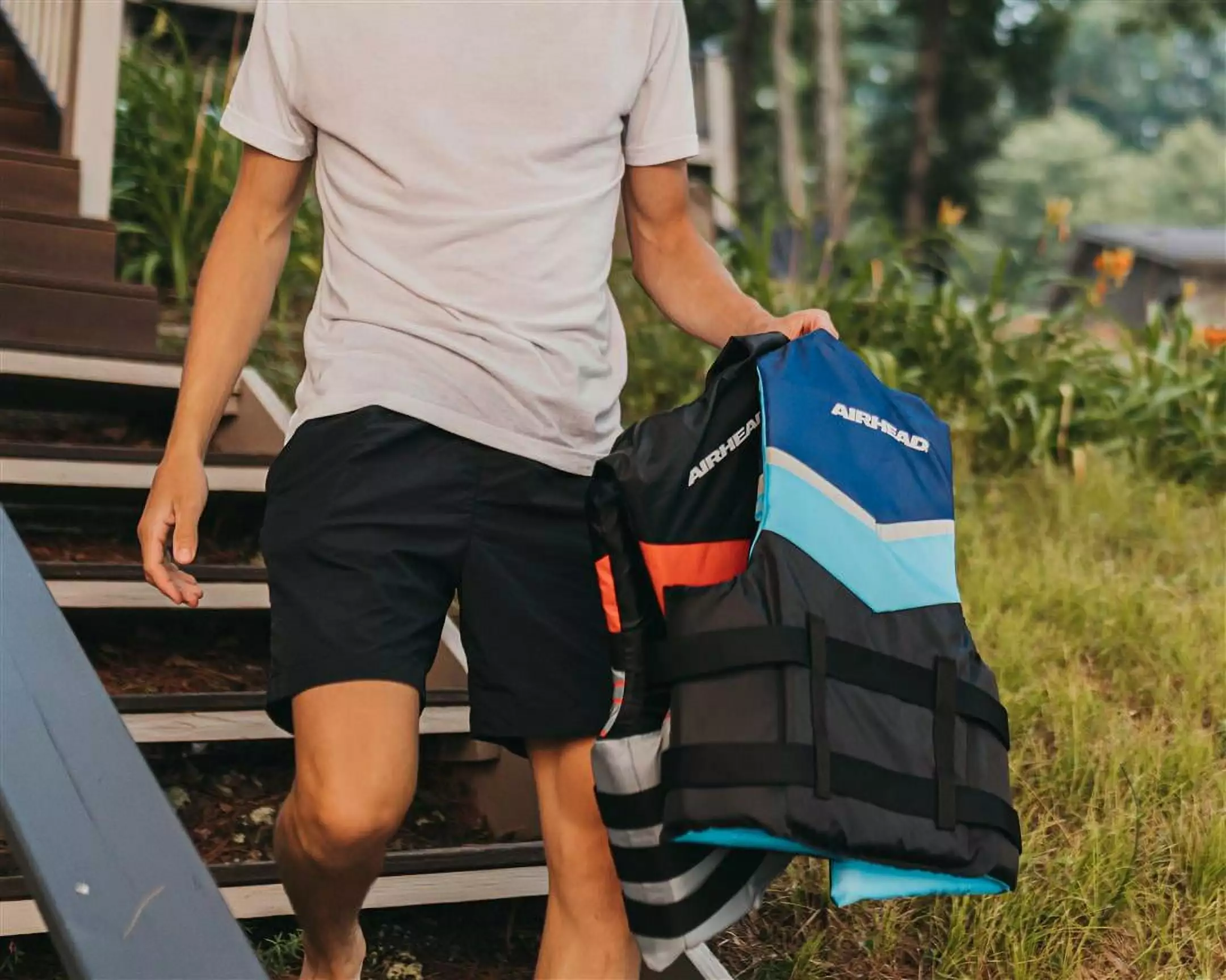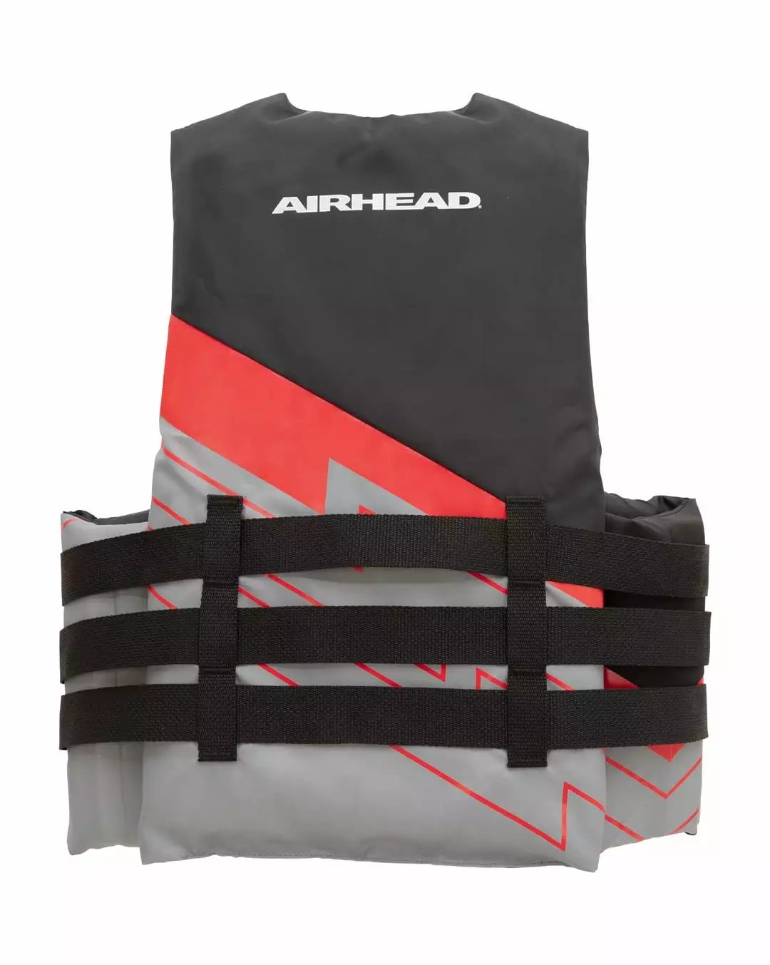 Zip and zoom through the water safely in the universal Airhead Bolt Life Jacket. Featuring side release buckles that snap open and closed with ease. this jacket is easy to take on and off in a pinch. The close-sided life jacket design offers a snug and secure fit that’s comfortable but won’t budge when you’re hitting the wake. Water lovers of all ages will enjoy the speed-inspired graphic design. which will stand out on the water. Don’t miss your chance to get one of the best U.S. Coast Guard approved. Type III life jackets there is.