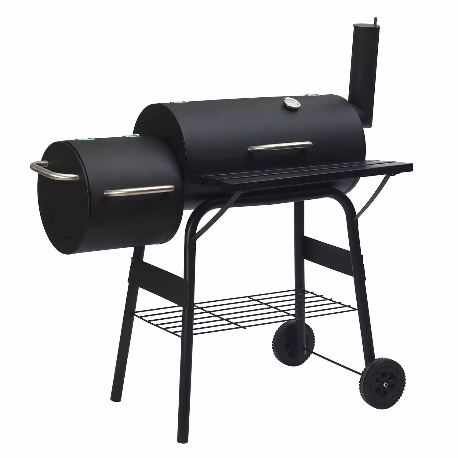 - Attached steel firebox reduces smoking and offsets heat.