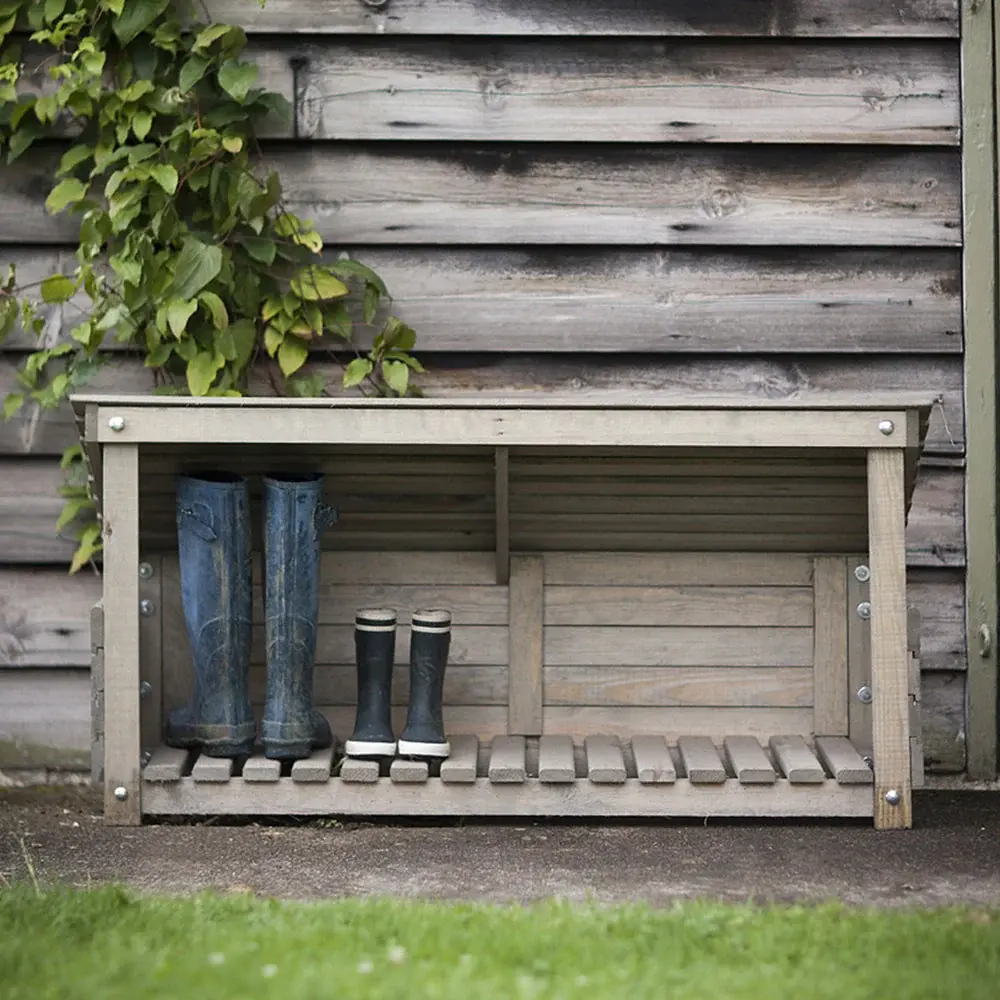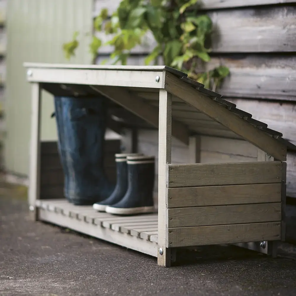 Practical design at its very premium. This Welly Store is a excellent fit for all the family’s outdoor footwear. Devised to provide boots and shoes with the definitive protection in all weathers and seasons. It’s crafted from stained Spruce and has a slanted roof with three sides to ensure that everything stored away is kept safe and more importantly, dry.