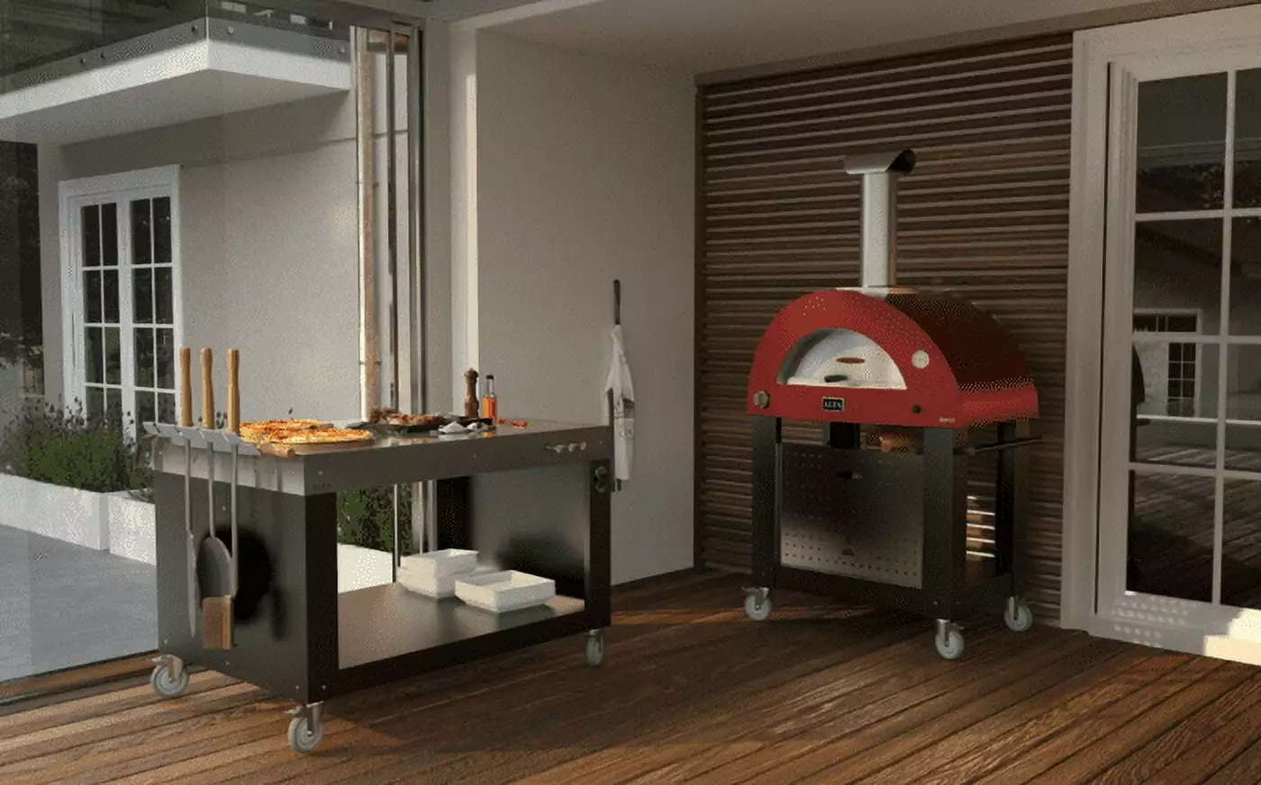 Alfa Brio Hybrid Gas/Wood Fired Pizza Oven The Alfa Brio is Smokey Mountain Fireplaces #1 selling pizza oven. Commercial quality pizza oven that you can have in your back yard – we are shipping them out same day or next day! The Antique Red Brio and Silver Black are IN STOCK and ready to ship Limited Edition Black and Blue are ins tock for a short time still. while supplies last we have them! (on Oct 1 2022 we have 10 Blue and 23 "Silver Black" Brio Ovens available. Brio at last! Here’s the new Alfa 2-pizza gas-fired oven. Brio is the oven that heats up so quickly that you can eat your first pizza in just 30 minutes. Alfa 3 Pizze Oven is replacing the Brio August 2023 Temperature. insulation and resistance. all in one pizza oven: the Alfa oven HeatKeeper refractory stone Fuel – Gas With Hybrid Wood Kit DoubleDown Ceramic Superwool® insulation Max Temperature 1000 degrees Smokey Mtn Blog Post for Propane to NG Conversion Included with all gas Alfa Pizza Ovens from Smokey Mountain Fireplaces Patented Full Effect Full Circulation Flue System® 5 reasons to choose an Alfa Heat Genius pizza oven Construction of the Forninox steel cooking chamber OptiDome semi-sphere design Shell with double layer powder coating Ready Already technology Sidefire gas burner Bring home the Brio to cook the real Neapolitan pizza in 60 seconds! Brio is the gas-fired oven that can also burn wood. Can’t decide between the speed and convenience of a gas-fired oven and the romance and aroma of wood-fired Brio is the answer! Brio is a gas-fired oven but. with the available hybrid kit. can also be used with wood. So. when everyone is hungry. you can get going quickly with gas. But when it’s all about the experience. you can use wood. Alfa’s R&D team has succeeded in producing an oven capable of retaining as much heat as possible by limiting heat loss after a careful study of the cooking chamber’s proportions and fluid flows protected by the Alfa Flue System patent; in this way. the heat is trapped for a long time inside the Alfa high-density fire bricks so that they reach the good temperature for an even cooking. Choose how to set up your kitchen nook with an Alfa oven: the Brio comes in the top version so that you can place it on an existing surface in the garden. mount it on its dedicated base or install it on the Alfa multifunction table External oven temperatures are moderate because of the triple layer of high-density. ceramic fibre insulation usually used in commercial pizza ovens (30% more insulation than competing products). The Alfa refractory bricks have higher density to gradually release heat and cook better (40% more retention than competing products). The Brio dimensions have been especially designed so that the oven can rest on the top of outdoor kitchens (only 76 cm deep). The Brio’s wraparound design will leave all your guests speechless. Available in the top version to place on the table. the shelf or the dedicated Alfa base ANSI Certified
