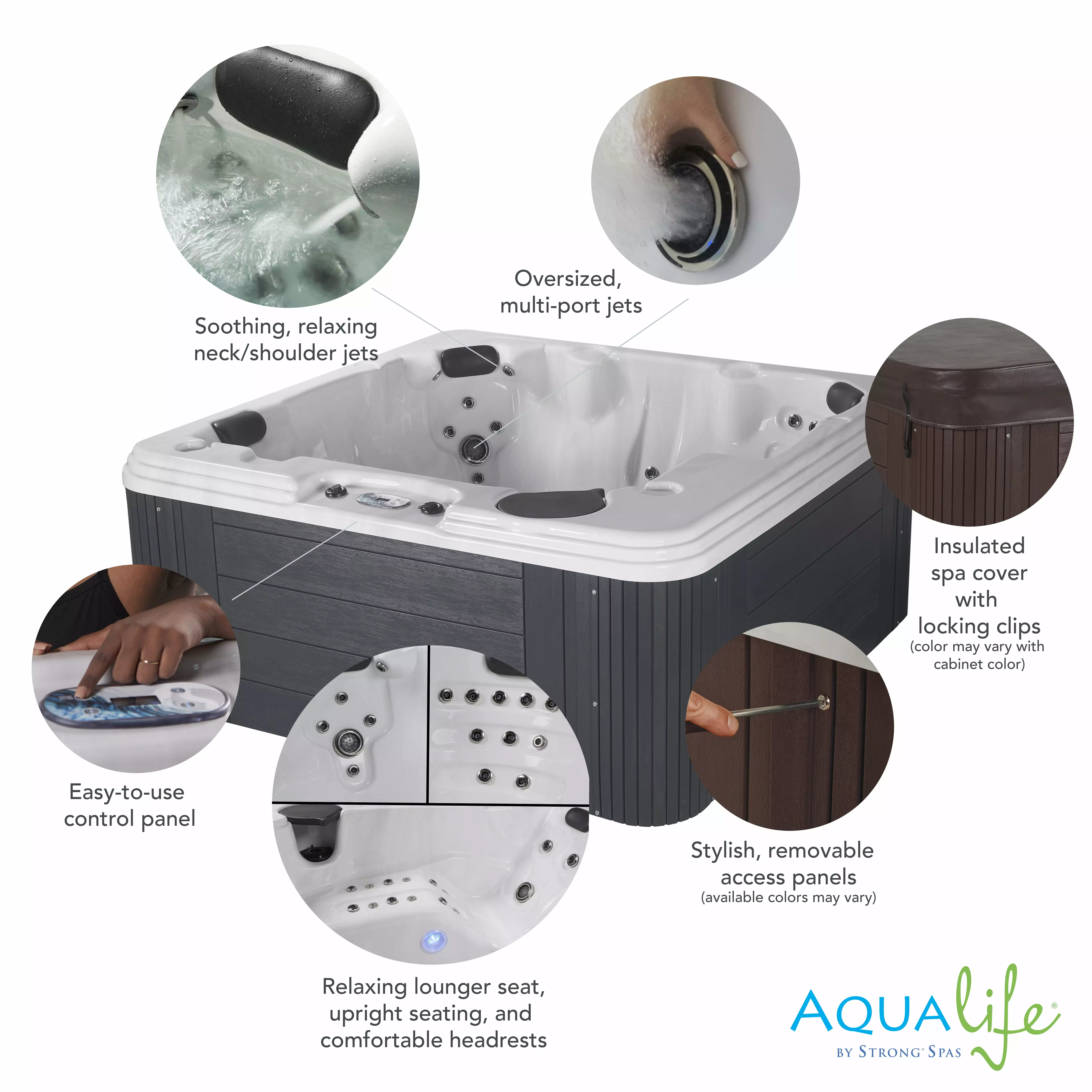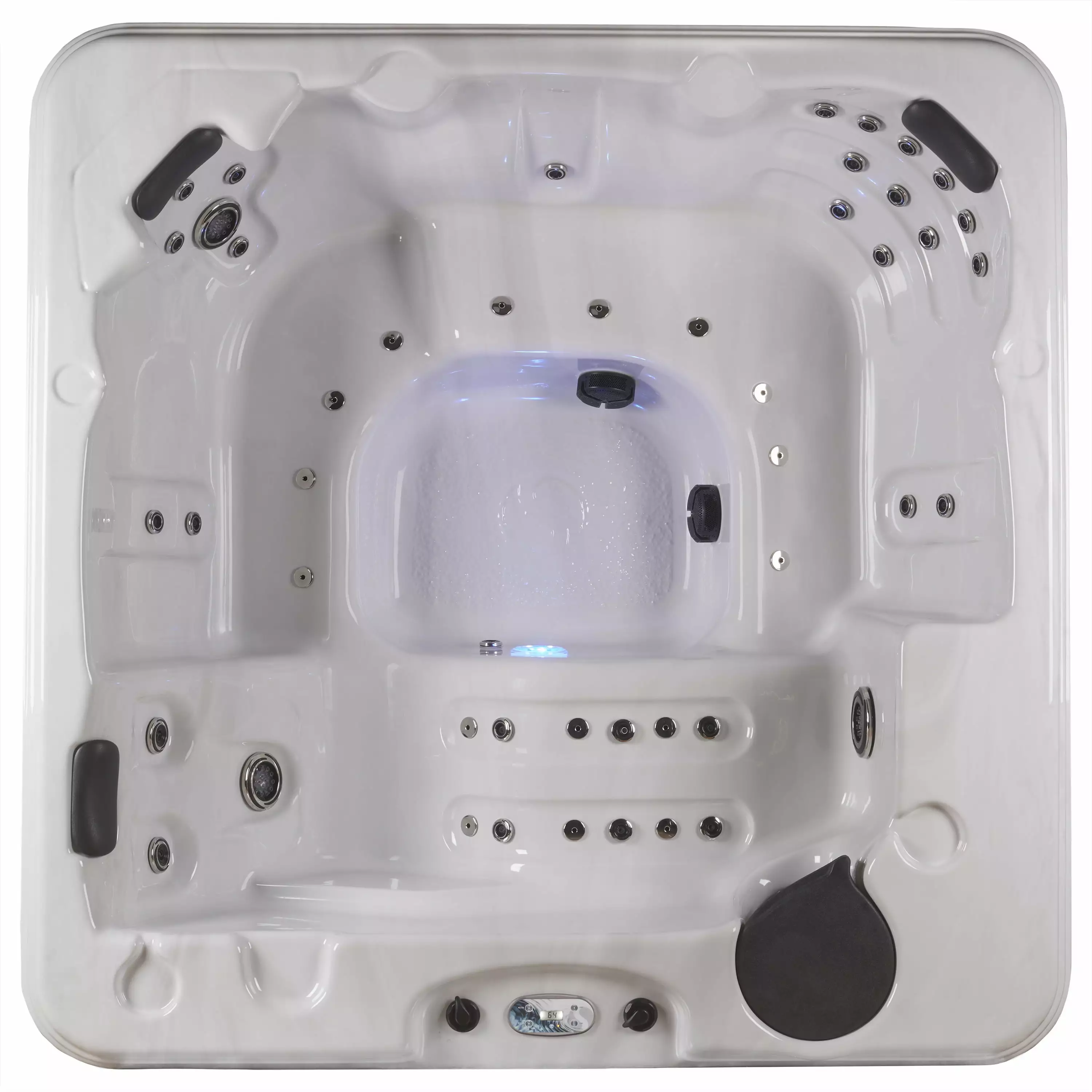 The Annapolis well-appointed spa is designed to transform the way you feel and live every day. 90 streaming hydro jets of soothing water. through 50 stainless-steel jets target the areas where you need hydrotherapy the most. Annapolis has seating for up to 6 people with a contoured lounger that cradles you from head to toe and headrests for added comfort. Our careful design delivers the optimal and most effective water pressure through every jet. leaving you revived. The energy-efficient 5 BHP 2-speed pump and 1 HP Blower has been specifically engineered to deliver powerful. yet comfortable. deep tissue massage. Making any time spa time. our 4kW stainless-steel heater consistently maintains your ideal water temperature. You control your spa experience. your way. with our user-friendly backlit digital topside control. The color-changing LED underwater light provides that added ambiance. Our cabinets are UV-resistant. and maintenance-free. A factory-installed ozonator make maintaining your spa easy. Ozone delivers natural water purification. keeping your spa water cleaner and reducing the need for harsh chemicals. The tapered insulated and locking spa cover also helps keep spa water free of debris and increases safety and efficiency.