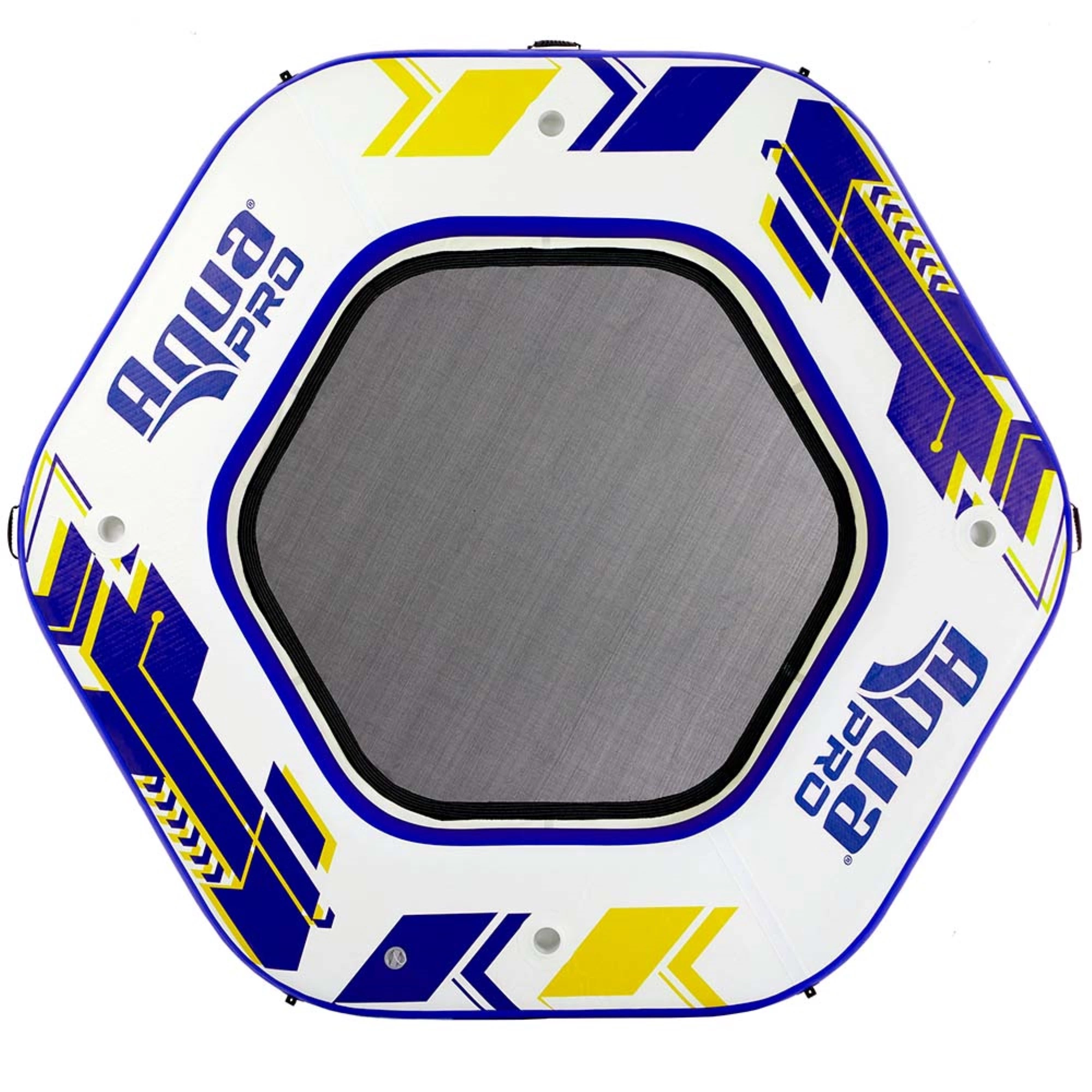 Large floating island perfect for water recreation for up to 6 people Heavy-duty mesh splash pad 4 mooring loops and 4 carry handles Multiple built-in drink holders High-pressure. quick-release valve Includes pump and backpackPerfect for up to 6 people Heavy-duty mesh splash pad 4 mooring loops and 4 carry handles Multiple built-in drink holders High-pressure. quick-release valve Includes pump and backpack