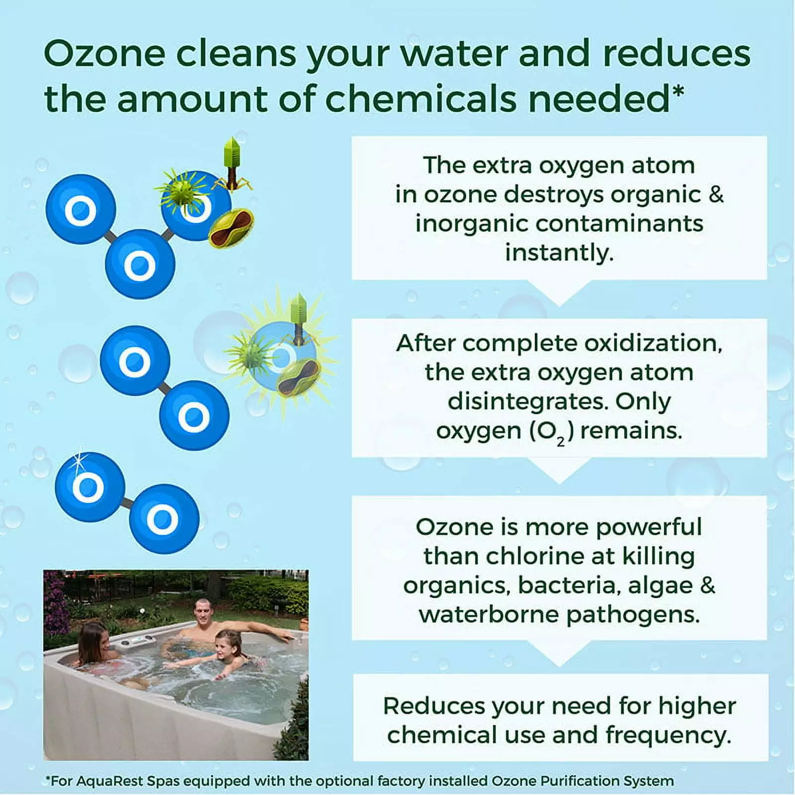 The Elite 500 Spa. with 29 Stainless Steel hydrotherapy jets. is packed with features that will make it hard for you to leave your backyard relaxation oasis! You can relax knowing your spa is using less energy with full foam insulation and ASTM certified locking safety cover to deliver optimum efficiency. Proudly made in the USA! Built to last and engineered with tough. impact-resistant polyethylene. This outstanding value. comfort and quality are comparable to other spas but at a fraction of the cost. The warm. relaxing hydrotherapy and outstanding performance is delivered through 29 Stainless Steel hydrotherapy jets. with dual side air controls. giving you full control. Your Massage. Your Way! The therapeutic lumbar arch support alleviates achy backs and the multi-level jet placement delivers soothing water pressure that massages every muscle into relaxation. Take relaxation to a whole new level with patented multi-color LED back lit cascading waterfall with 9 colorful light settings to help create just the right ambiance. Spend more time enjoying your spa and let the EZ Kleen Filtration System. providing 100% water filtration. combined with the factory installed Ozone Purification System. which eliminates up to 75% of chemicals. work together to keep the water crisp and clean. At 295 lbs.. it is easily portable too. Set it up. fill it up. plug it in and enjoy! Time to relax and enjoy this affordable. comfortable spa without breaking the budget. Our quick ship guarantee gets you enjoying your spa life sooner.