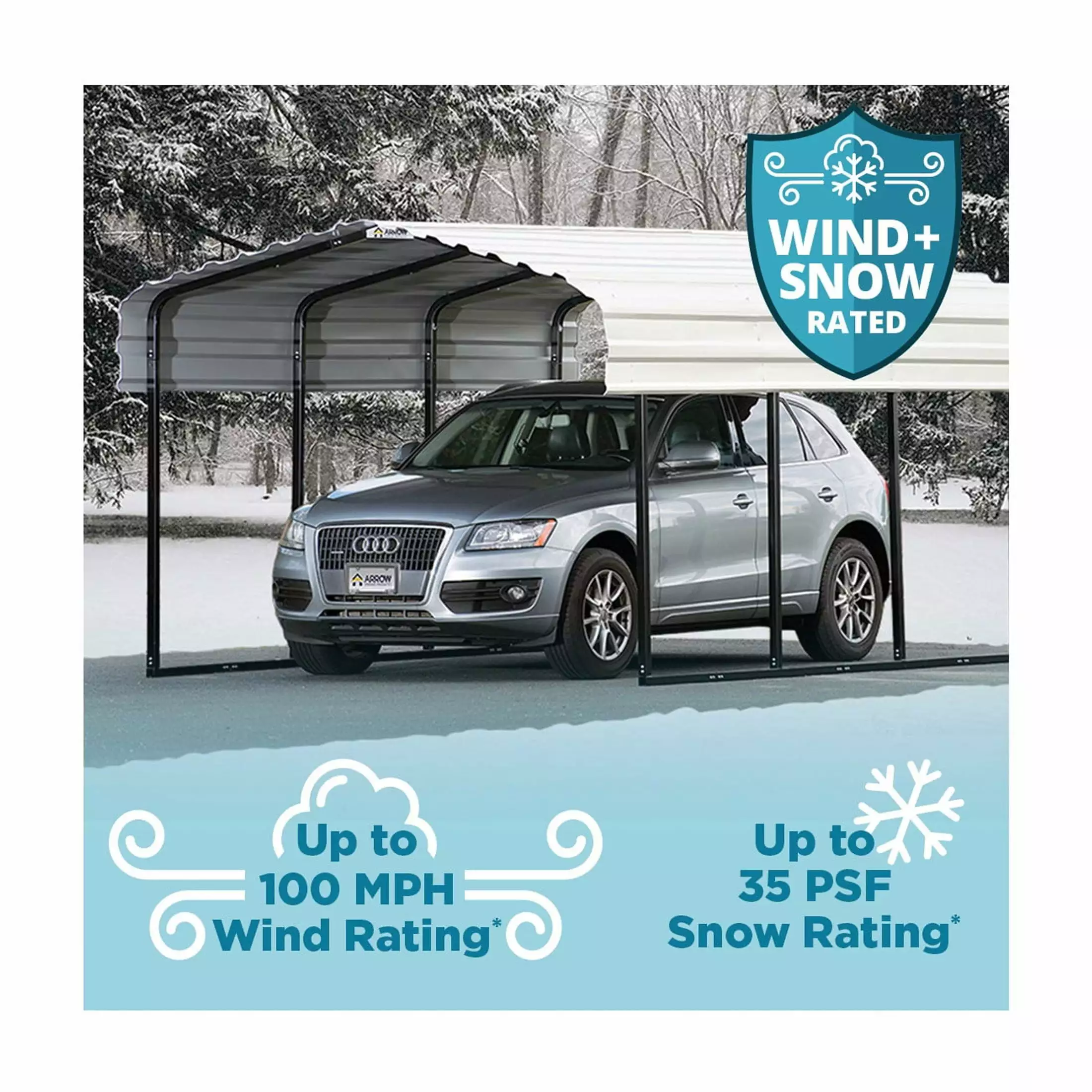 - An All-Weather Carport That Will Protect Your Vehicle Or Outdoor Space All-Year Long: The Arrow Carport Is Built To Take On Even Tough Weather – Winds Up To 100 Mph. And A Snow Load Of 35 Psf