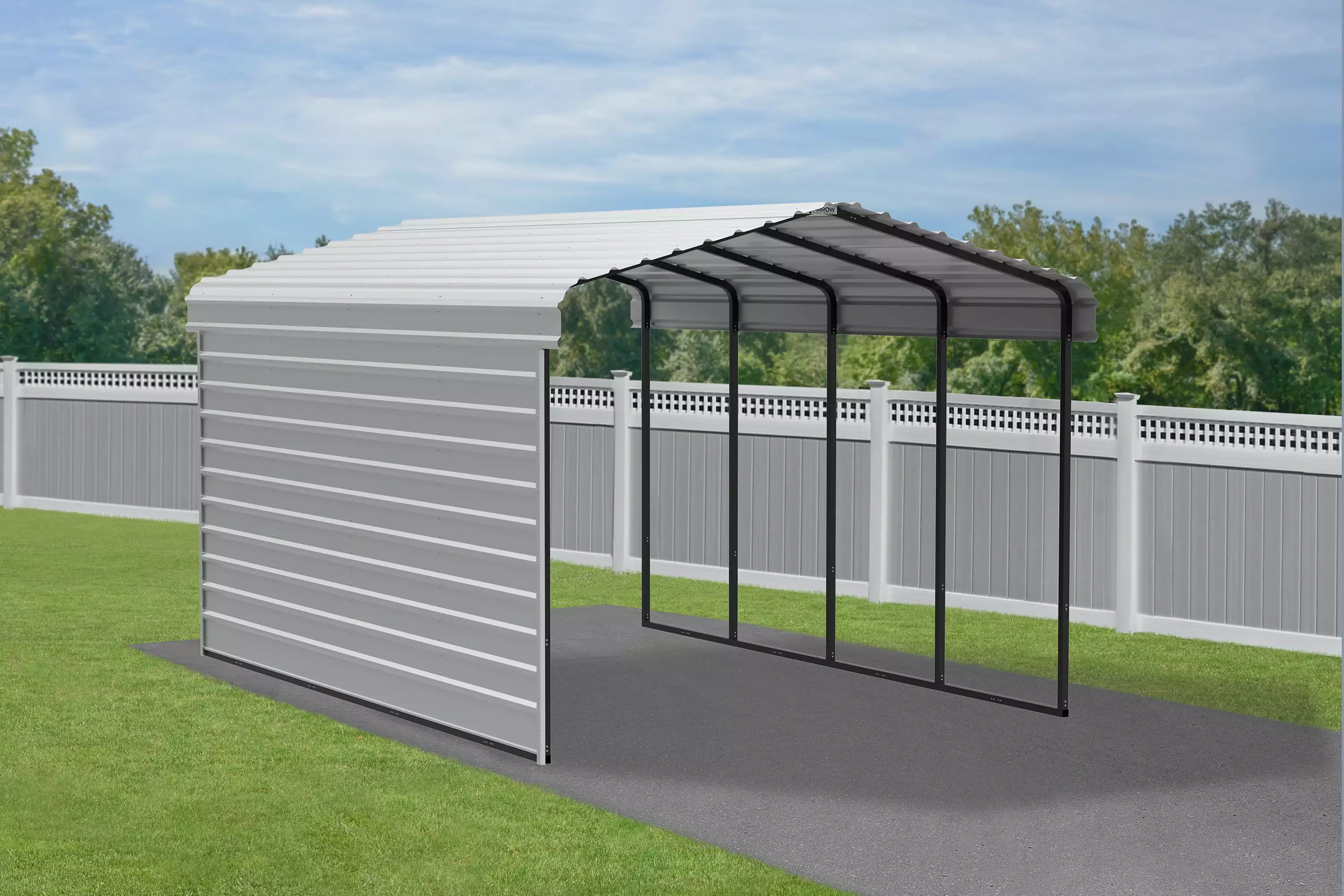 The All-Steel Arrow Carport With 1-Sided Enclosure Is A Convenient. Versatile. And Practical All-Weather Shade And Shelter Solution That Can Be Used Anywhere You Need Protection From The Elements. Each Arrow Carport Is Snow-Load Rated And Designed To Take On Tough Weather Conditions. Get One To Keep Your Everyday Ride Shielded From The Weather Or To Keep Your Patio Or Party Area Shaded.