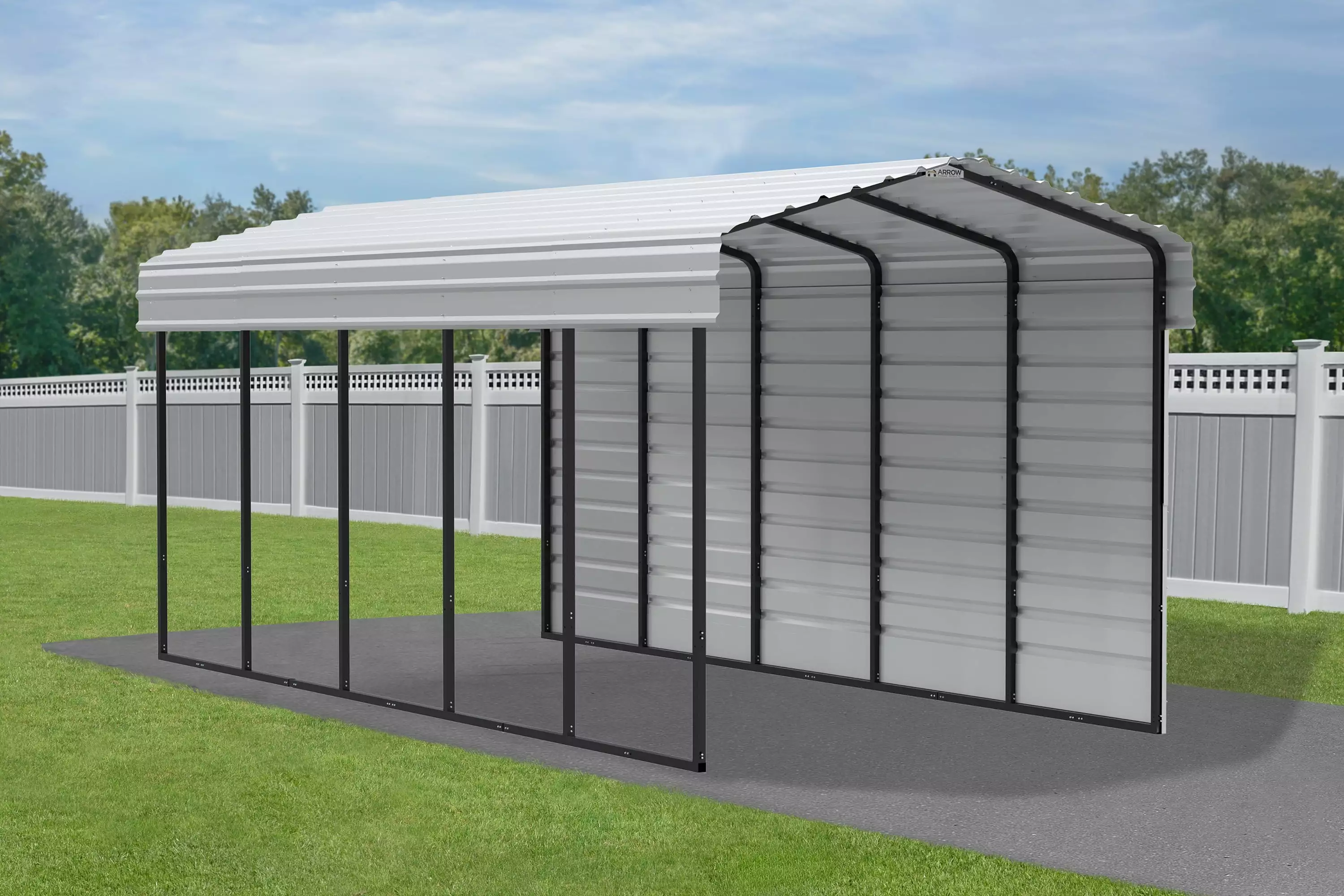 The All-Steel Arrow Carport With 1-Sided Enclosure Is A Convenient. Versatile. And Practical All-Weather Shade And Shelter Solution That Can Be Used Anywhere You Need Protection From The Elements. Each Arrow Carport Is Snow-Load Rated And Designed To Take On Tough Weather Conditions. Get One To Keep Your Everyday Ride Shielded From The Weather Or To Keep Your Patio Or Party Area Shaded.