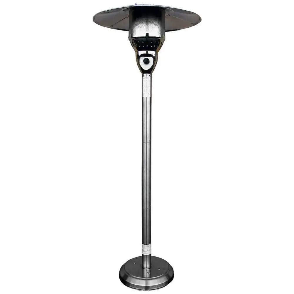 85″ Natural Gas Outdoor Patio Heater in Stainless Steel Chilly nights call for an outdoor heater, and what better way to solve this problem than with our patio heater. This patio heater will make a great addition to your patio, as it will allow you to enjoy the outdoors when the temperature starts to drop. This beautiful CSA certified patio heater is simply assembled. 85-Inch high natural gas patio heater with stainless steel finish. 41,000 BTU’s, variable control. Integrated ignition, ground fixtures, thermocouple and anti-tilt safety devices. Burner cover not included. CSA approved. Natural gas hose NOT included.