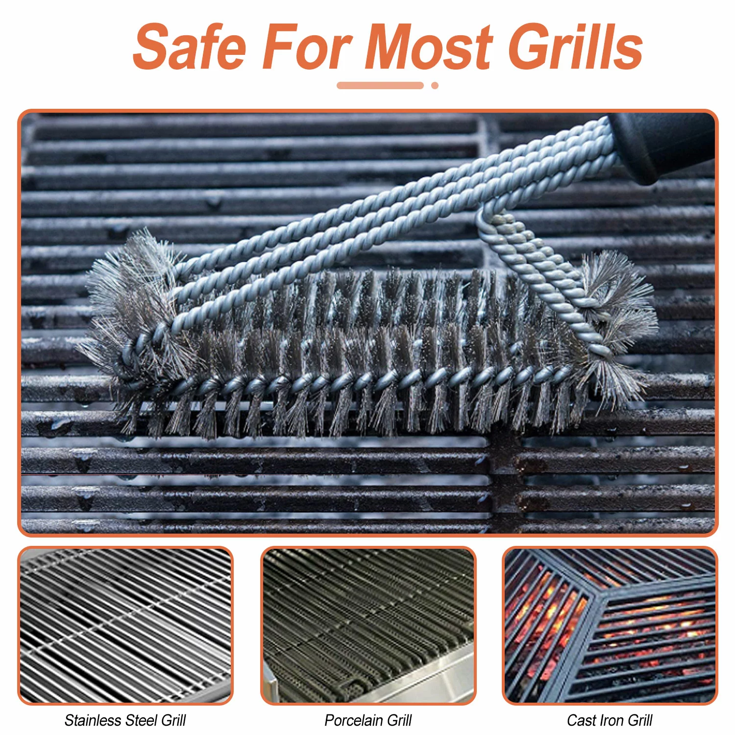 - [Suitable For Most Types Of Grill]It is safe for Porcelain. Ceramic. Infrared. Weber. Char-Broil. etc. Keeps your grill looking shiny new!