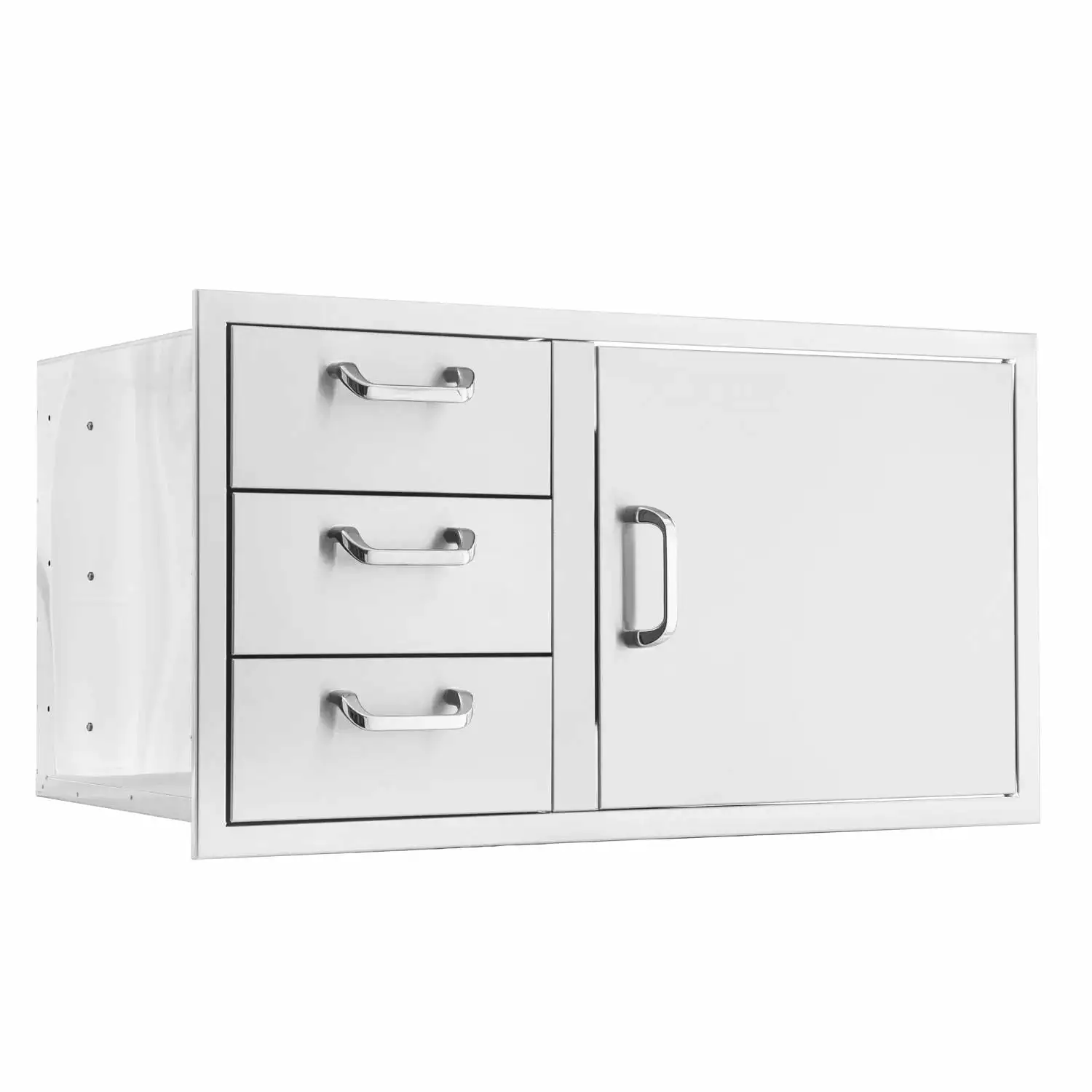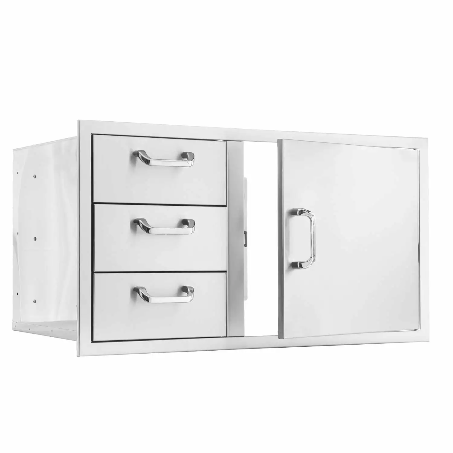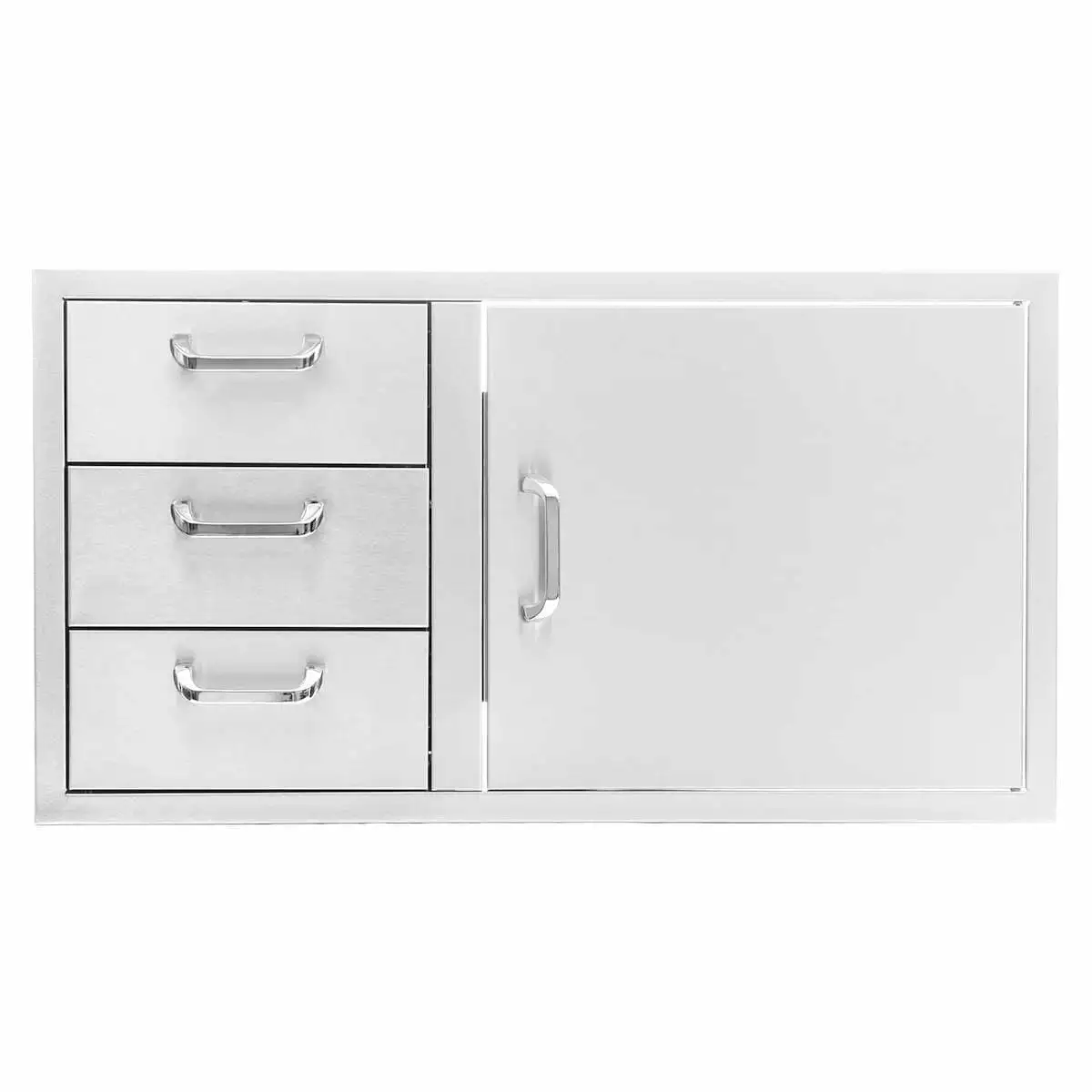 BBQGuys Signature 3-Piece 39-Inch Door & Triple Drawer Combo Outdoor Kitchen Storage Package – Traditional – BBQ-260-DDC-39-T-3PC. BBQ-260-DDC-39-T-3PC. Outdoor Kitchen Equipment Packages. This 3-Piece BBQGuys Signature Traditional outdoor kitchen storage package has almost everything you need to get started on a durable. quality outdoor kitchen at an affordable price. The BBQGuys Signature Traditional 39-Inch stainless steel reversible access door & triple drawer combo is constructed with a 20 gauge 304 stainless steel frame and number 4 brushed finish. The double lined door adds structural integrity and the drawers use heavy-duty. commercial grade ball bearings that glide on full length drawer tracks for easy opening and closing. Flush mounted for a streamlined appearance. this access door and drawer combo is the perfect outdoor kitchen accessory for any outdoor BBQ island. providing storage space and access to the underside of grills and side burners. The unit can be installed with the access door hinged on either the left or right side. The Traditional handles require installation on this access door & triple drawer combo. Product does not include installation hardware or instructions. Door Opening Dimensions: 19 3/8 W X 18 3/4. Internal Drawer Dimensions: 12 3/4 W X 19 3/8 D X 4 1/2 H. The BBQGuys Signature Traditional 20-Inch roll-out stainless steel double trash & recycling bin is constructed with a 20 gauge. 304 grade stainless steel frame and number 4 brushed finish. Heavy duty commercial grade ball bearing tray glides smoothly on full length tracks providing easy access. The unit is flush mounted for a streamlined appearance and two 42-quart trash cans are included. The Traditional handle requires installation on this roll-out bin. Product does not include installation hardware or instructions. The BBQGuys Signature Traditional 16-Inch stainless steel triple access drawer is constructed with a 20 gauge. 304 grade stainless steel frame and number 4 brush…