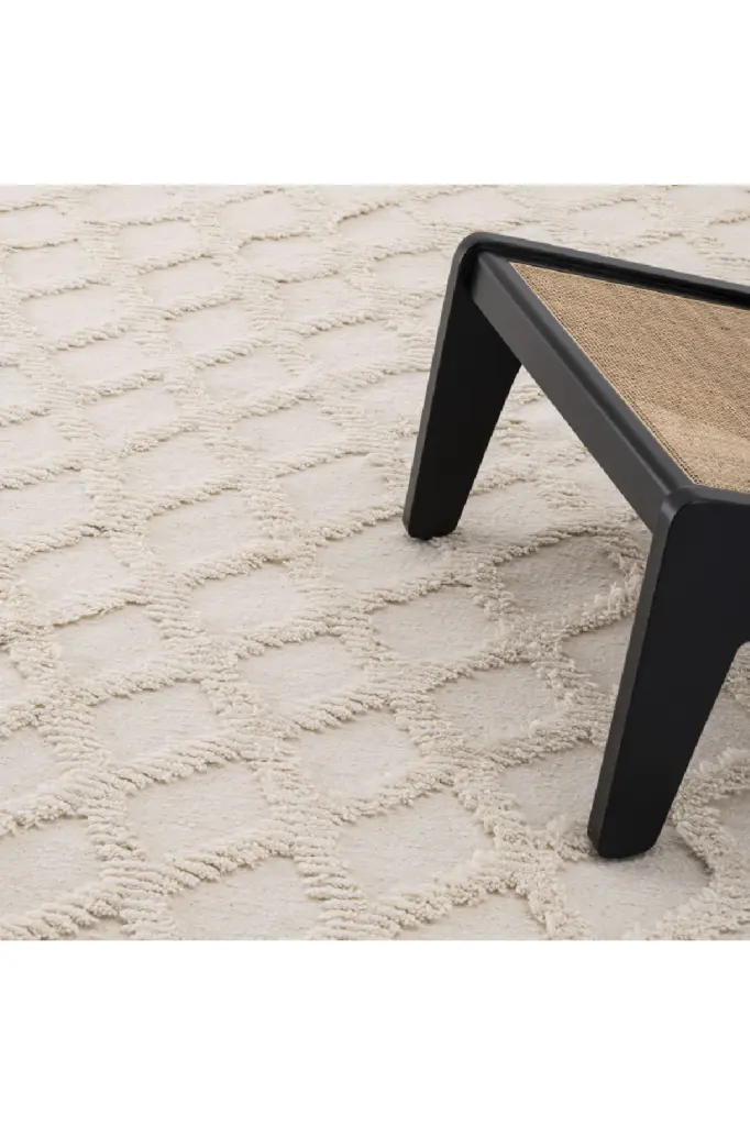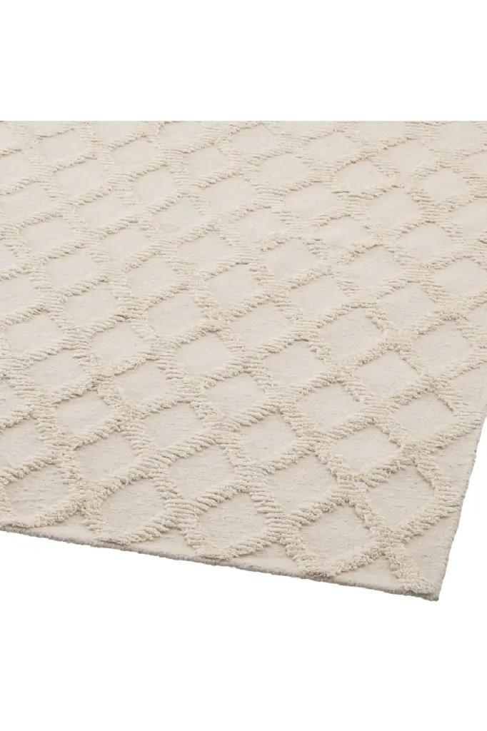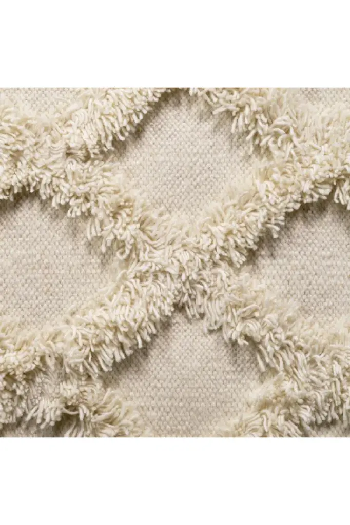 A perfect mix of shaggy and chic, the ivory Carpet Carr�� is a great choice for adding some inviting texture and comfort to your living space. Hand woven from 100% wool pile, it has a modern diamond design that is well-suited to both classic and contemporary interior styles.