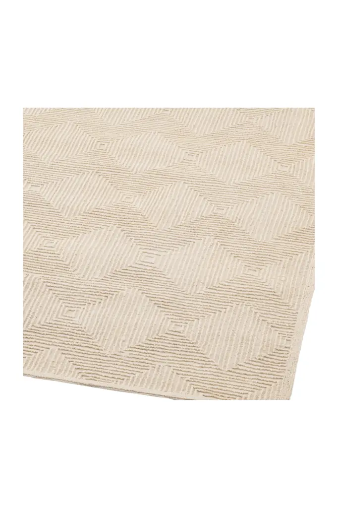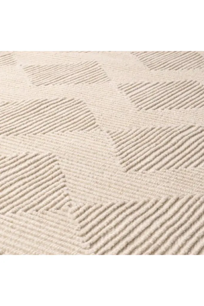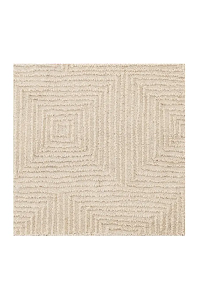 Give your home interior a natural look and feel with the ivory colored Carpet Byzance. Hand tufted from 100% wool pile in a relief pattern of lines and squares, it will bring warmth, texture and depth into your living room.