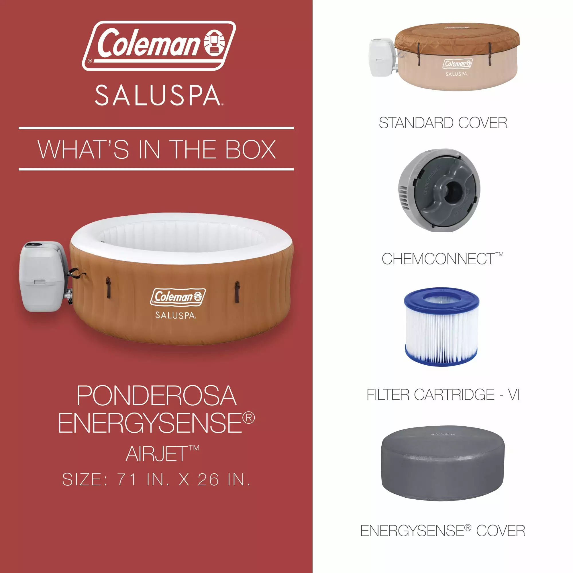 After a long day. nothing is more relaxing than sinking into warm. bubbling water in your backyard. The spacious. round design of the Bestway Coleman Miami Hot Tub provides a soothing massage experience for up to 4 people. Simply attach the pump and watch as it inflates. Featuring an AirJet system with 120 jets. this hot tub releases bubbles from the bottom of the spa to create a warm. bubbling hot tub environment. These calming bubbles will help you relax and unwind from the comfort of your home. Whether you’re seeking a solitary escape or hosting a gathering of friends. this spa caters to your every need. Built with durable DuraPlus materials to avoid damage. you can ensure this hot tub retains its shape after repeated inflation and deflation. Including a FreezeShield with an automatic heating function. this hot tub’s inner components will not freeze during colder temperatures. The true game-changer is the included EnergySense Cover. which not only ensures the water remains at the ideal temperature but also conserves energy. making it a great choice. With a simple touch. you can transform your space into a private oasis where worries dissipate. Including 2 built-in cupholders and a reinforced. insulated pool cover that locks in heat while not in use. you can be sure this spa is ready for when you are. Escape away to loosen your muscles with the Bestway Coleman Miami 4-Person Inflatable Hot Tub Spa.