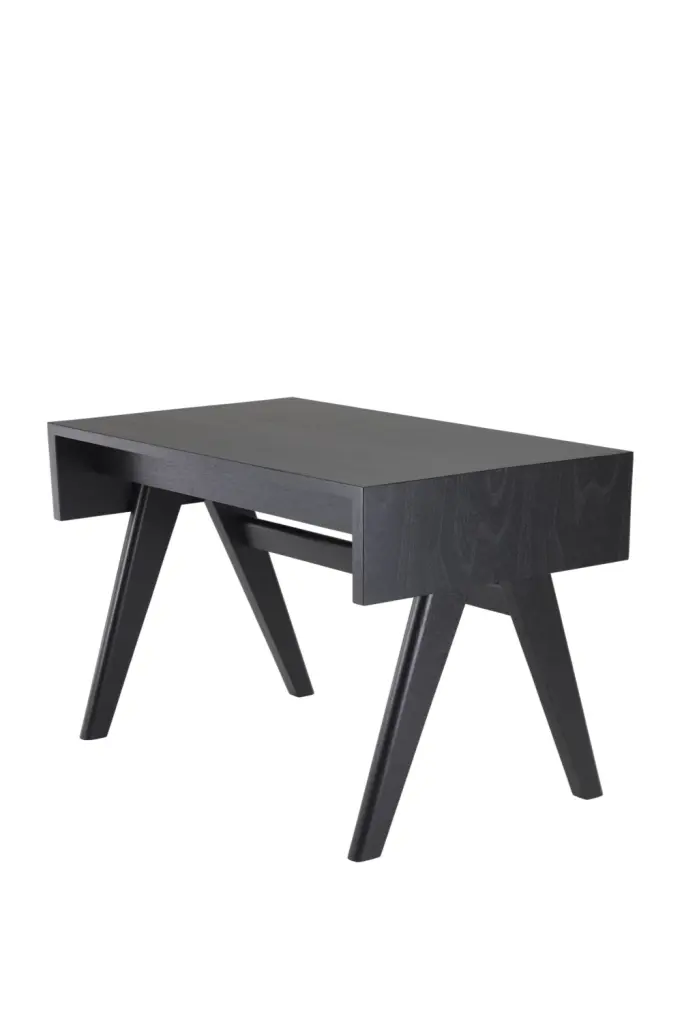 Desk Fernand is perfect for bringing a retro aesthetic into your living space. Thanks to its unobtrusive design, this solid wood desk with a classic black finish can give you the minimalist setting you desire. Whether you use it as a computer desk or a console table, this piece will upgrade your space with its distinctive Mid-Century Modern appeal.