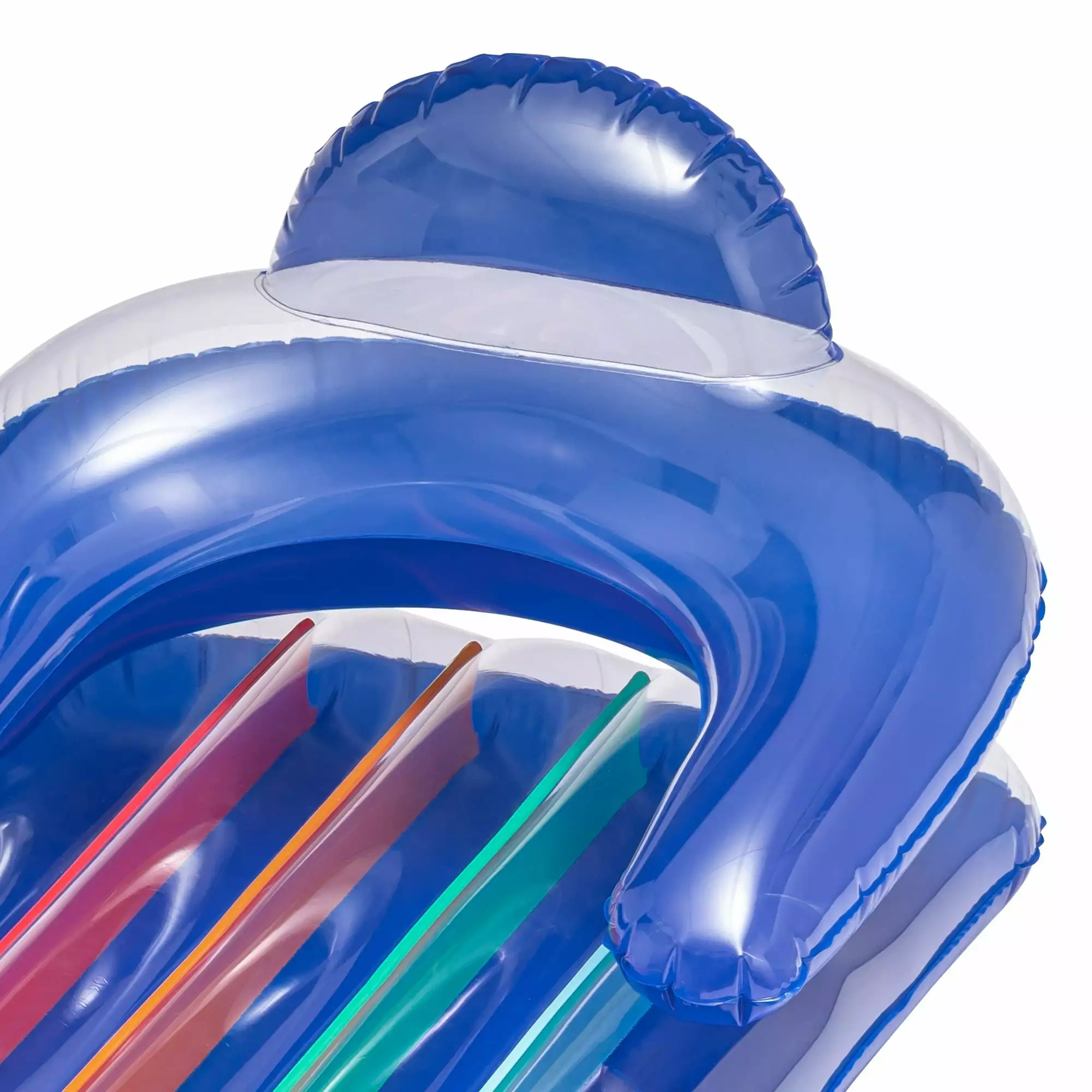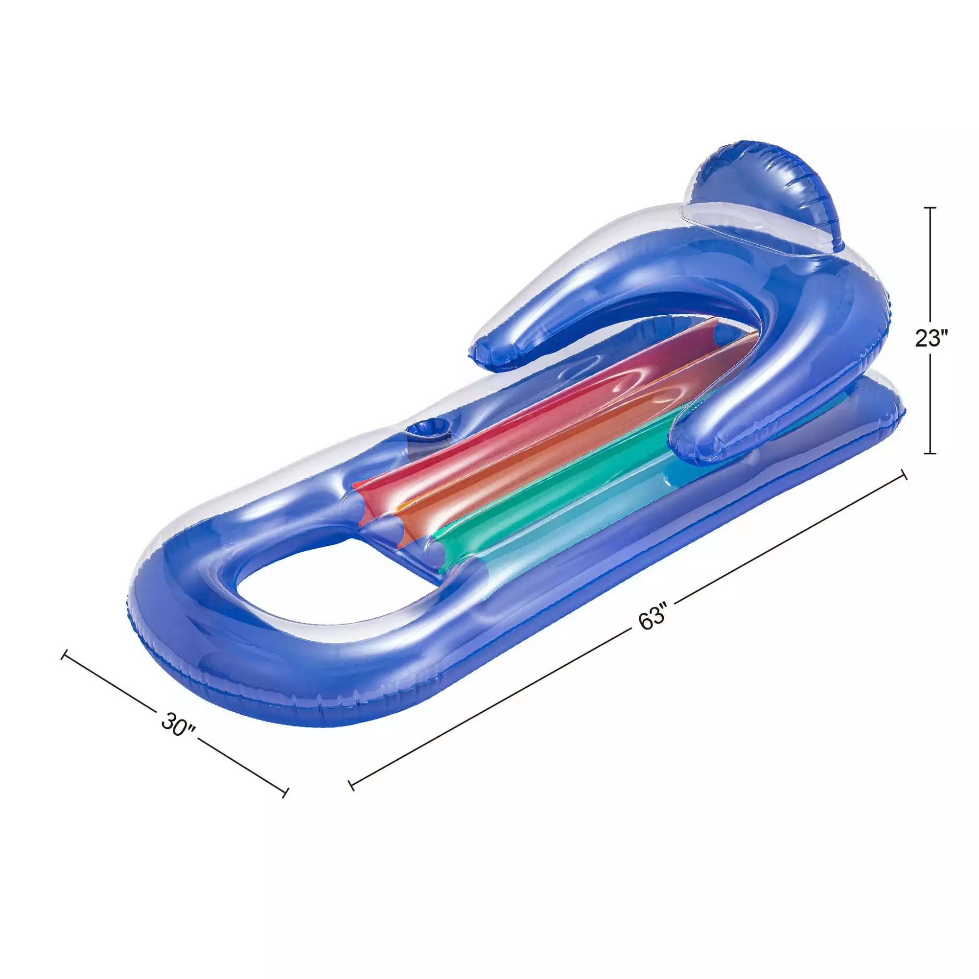 The Bluescape Deluxe Lounge Pool Float is ideal for summer chill sessions. This durable pool lounge features an attractive clear top and colorful I-beam design. The float lets you relax easily with a comfortable air pillow and armrests. You can dangle your legs in the water or opt to keep them on top. It also includes a cup holder to keep your refreshing drink close by. Easy-to-inflate. this float is made with durable. puncture-resistant materials. Suitable for all genders. adults will enjoy summer chill time at the pool. lake or beach with this floating lounge.