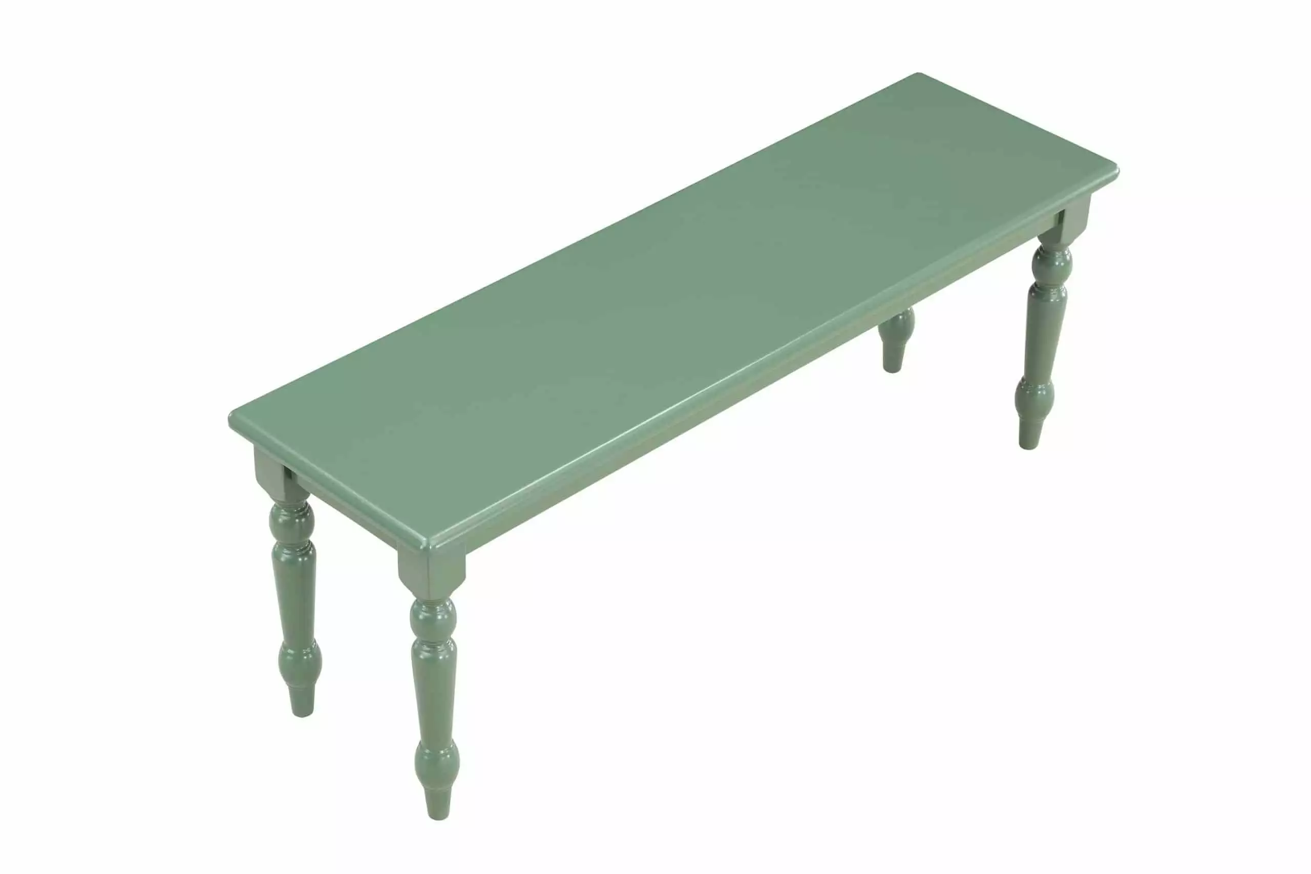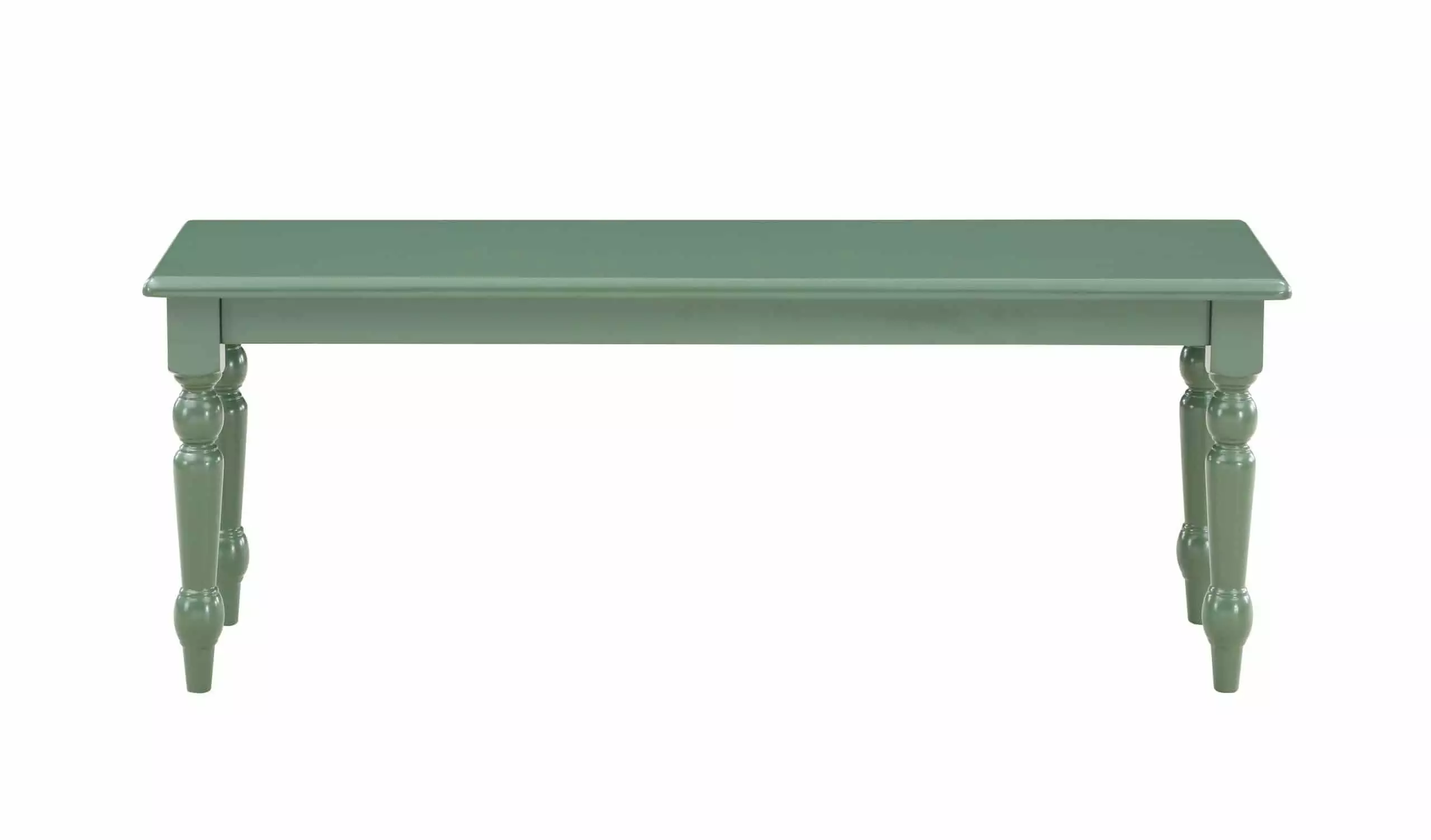 The Carolina Dining Bench proves that timeless style is never boring. With it elegant turned legs. bold Equestrian Green finish. and charming farmhouse looks. this bench brings designer-worthy style to your home. Crafted from solid rubberwood. this bench is large enough to comfortably fit two people (three if you squeeze). Be sure to complete your farmhouse-inspired dining room with the matching Carolina Dining Table and Carolina Dining Chairs. (All pieces sold separately.)
