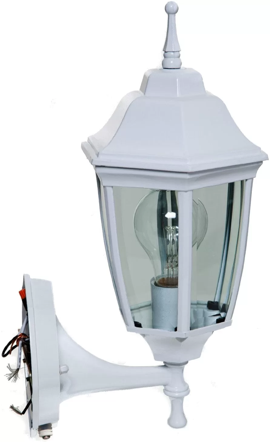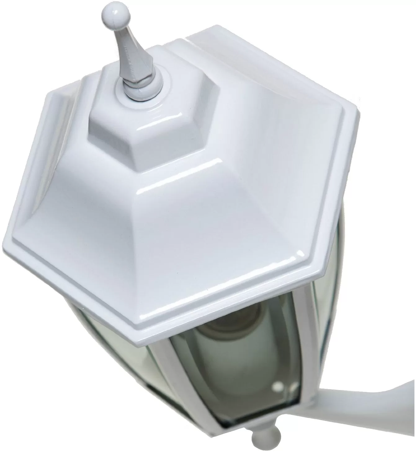 Contemporary white finish and durable construction outdoor Lantern. Clear glass and hexagonal shape that perfectly compliment to your sidewalk. garden path. or driveway.