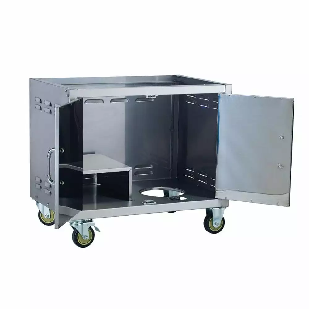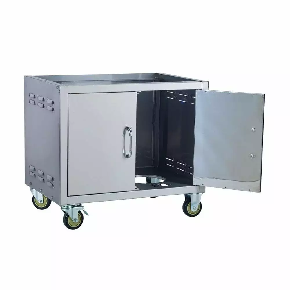 Figuring out where you’re going to put your grill head is an essential step to creating your own customized grilling experience. You can keep it stationary or put it on wheels by placing it on the Bull Outdoor Products 30-Inch Pedestal Cart Bottom. This pedestal cart fits Bull’s 30-inch premium BBQ grills. It’s made with durable stainless steel so it will last as long as your premium grill. if not longer. Wheels are attached at the bottom so you can move it around your yard easily. The 2 doors swing open wide so you can access the fuel source.