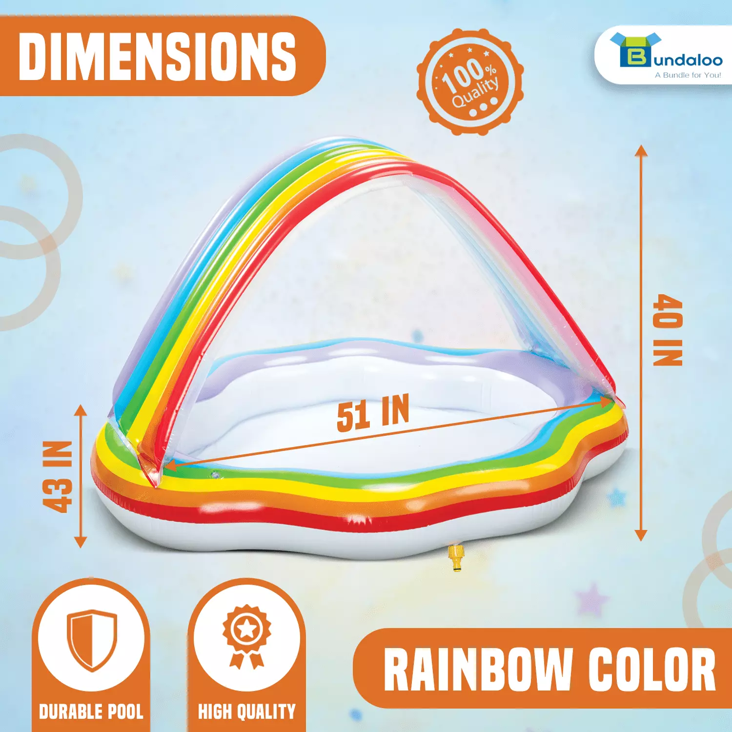 - Bundaloo Baby Pool with Canopy and Sprinkler – Inflatable Rainbow Kiddie Pool for Toddler Boys and Girls with Shade – Perfect Toy for Outdoor Summer Fun (Rainbow)